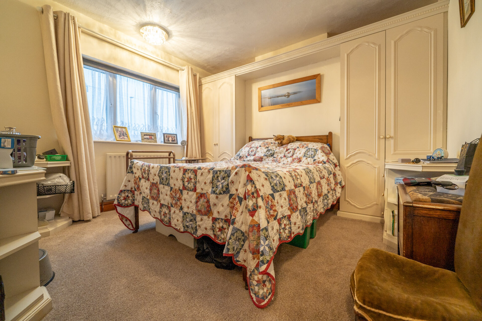 A good size double bedroom with fitted wardrobes to both recesses, carpet flooring, double glazed window to the front elevation and radiator.