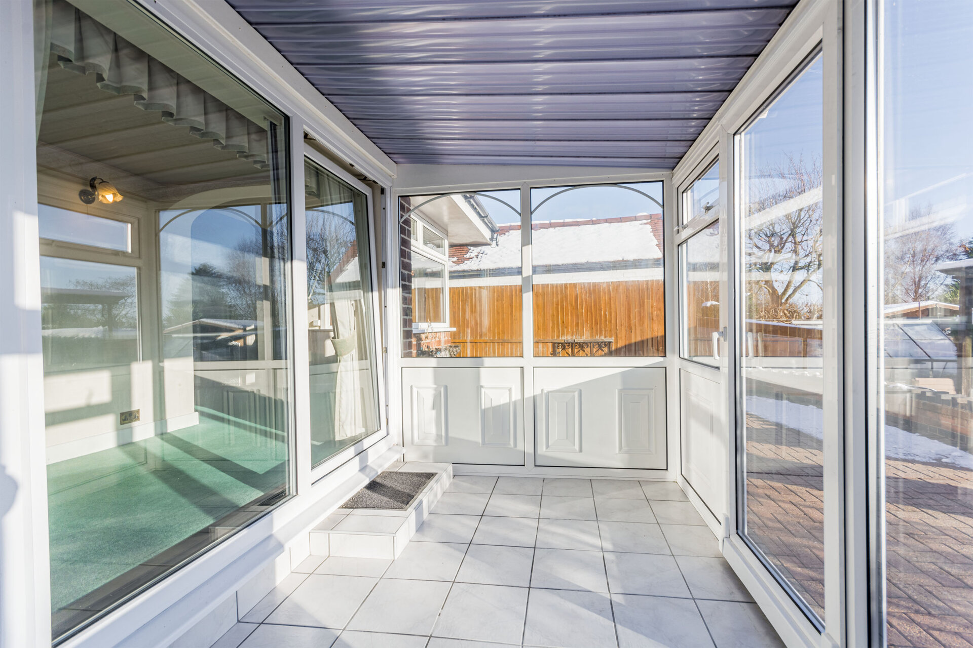 Another great room to admire the views with double glazed windows to both sides, double glazed sliding patio doors to the rear and tiled flooring.