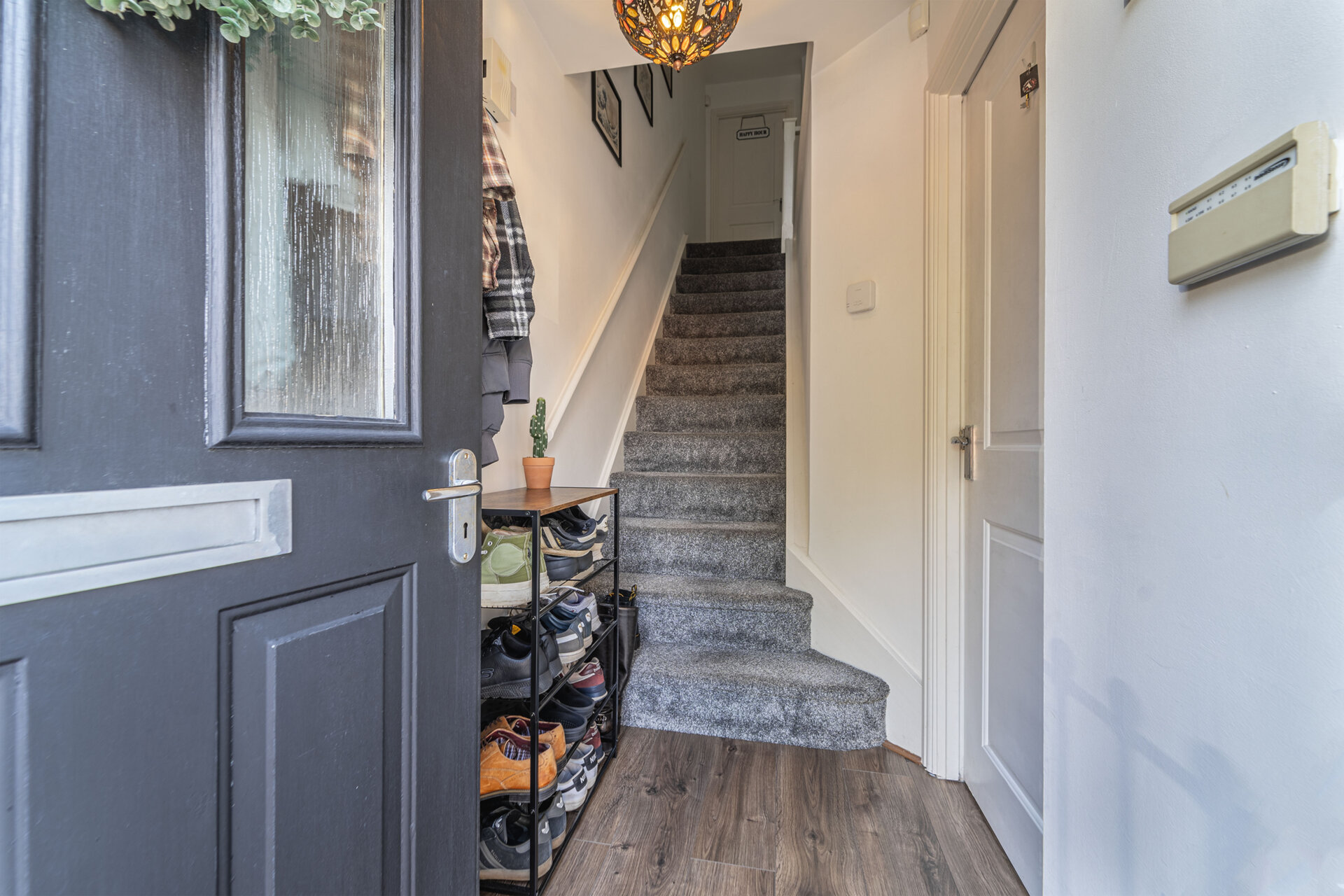 Double glazed door to enter, laminate flooring, area for cloaks, stairs ascending and door to