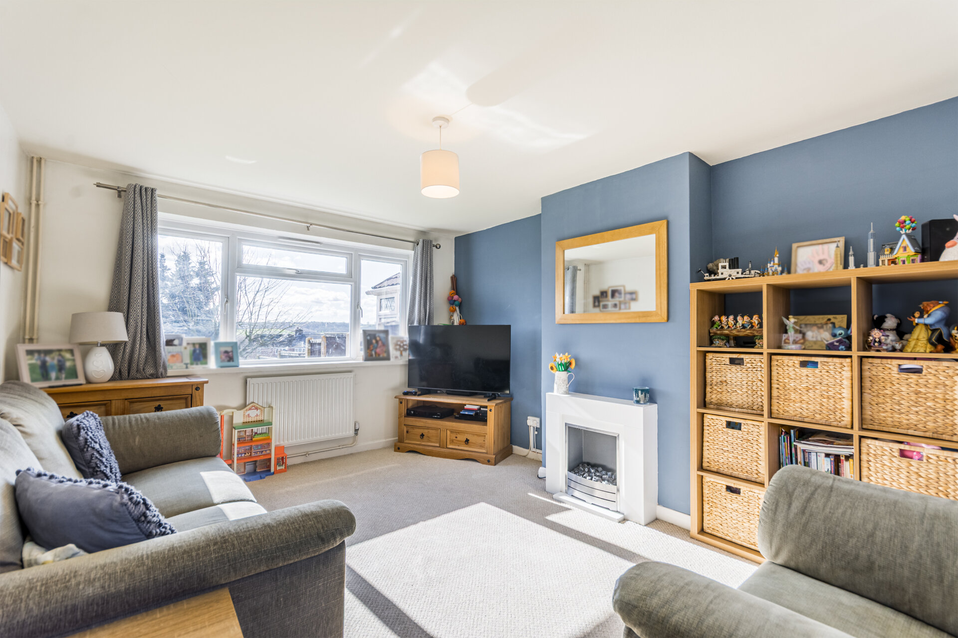 With dual aspect, double glazed windows to the front and rear elevation, carpet flooring. chimney breast, electric fire, recess alcove side, radiator.