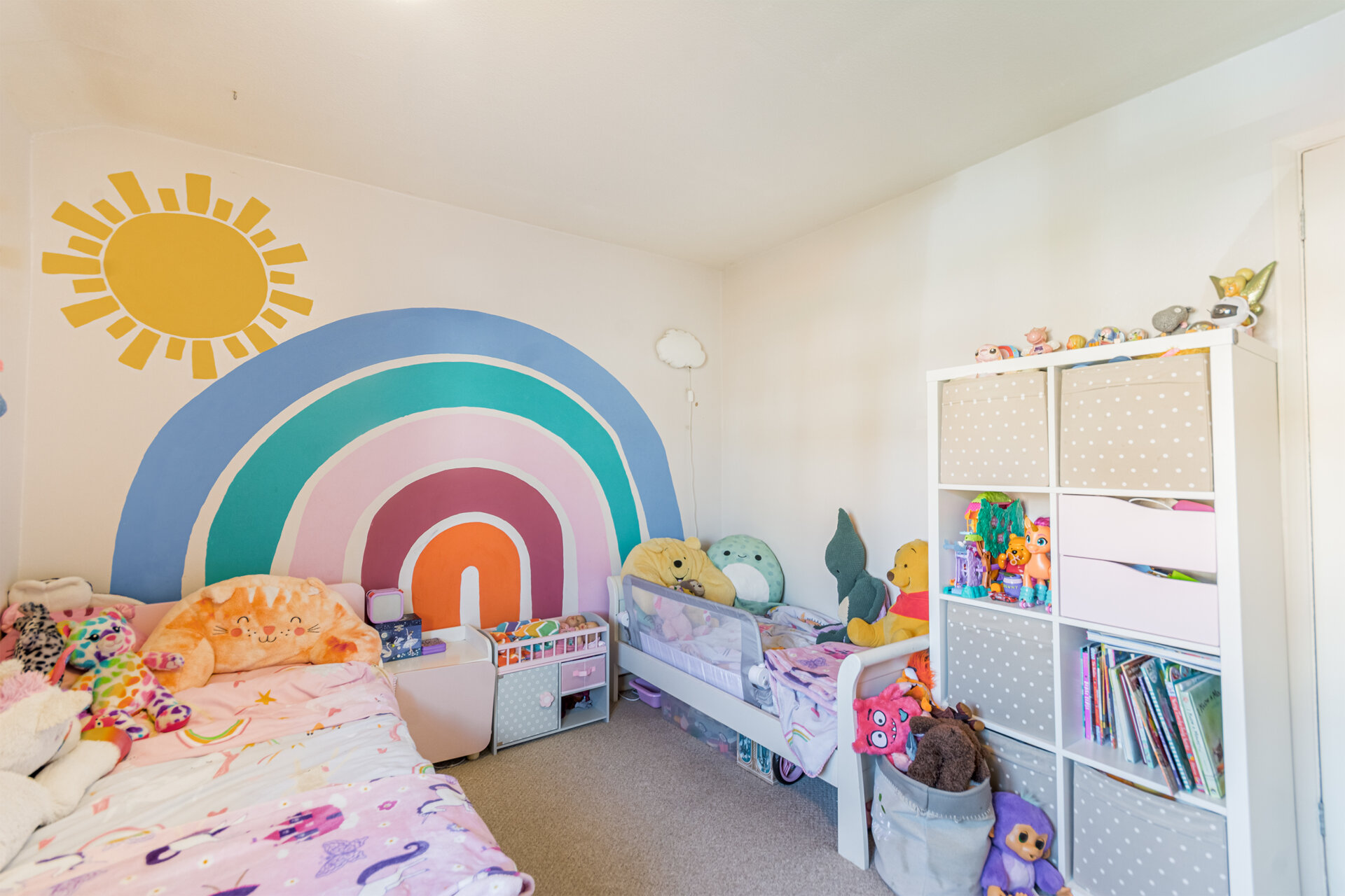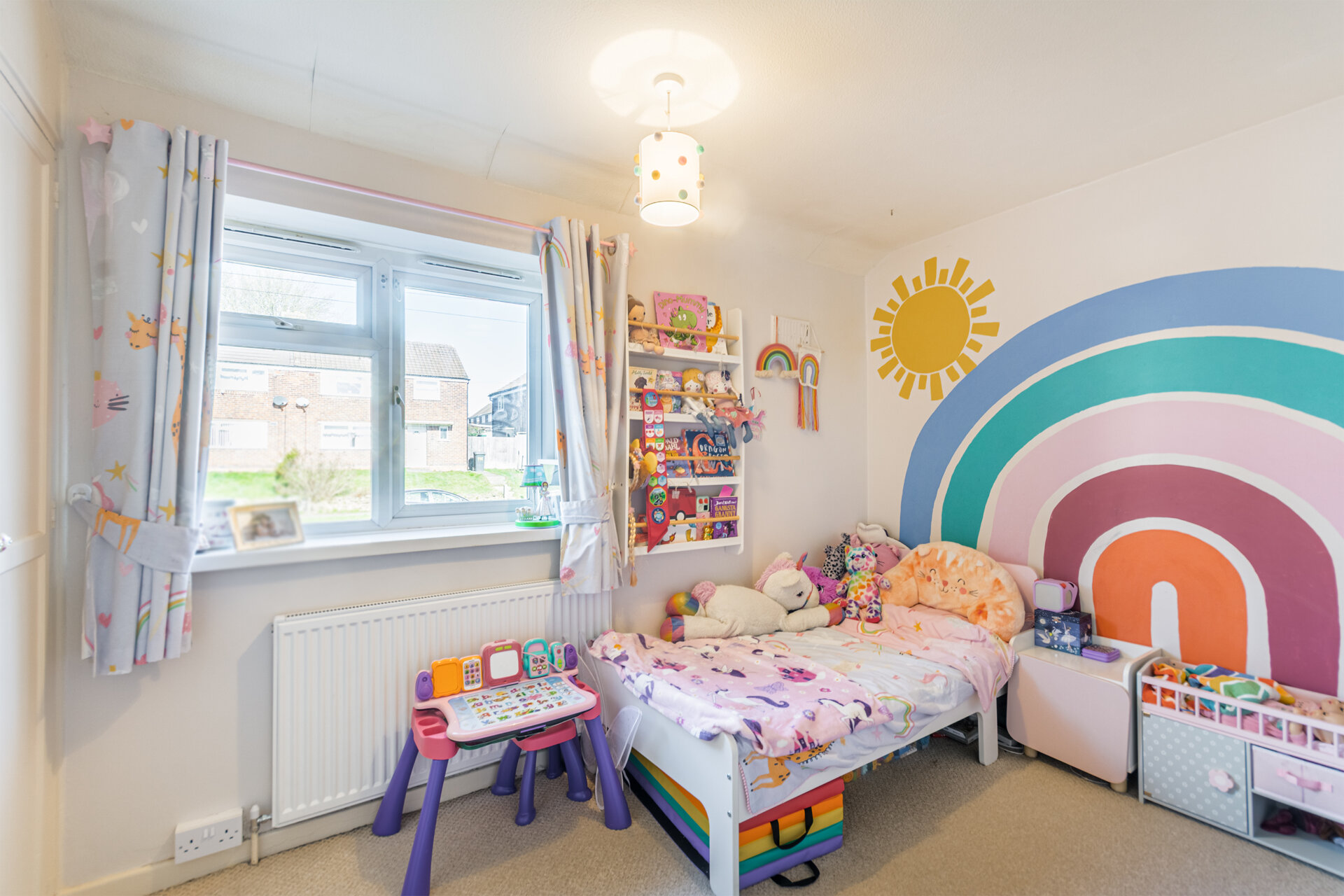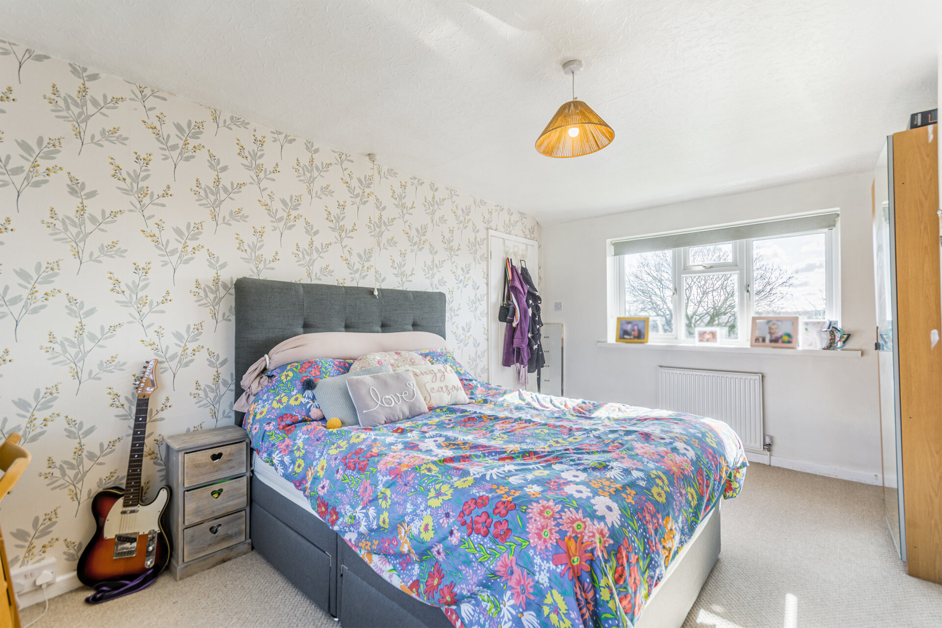 Another double bedroom, carpet flooring, radiator, over the stairs cupboard, and built in wardrobes.