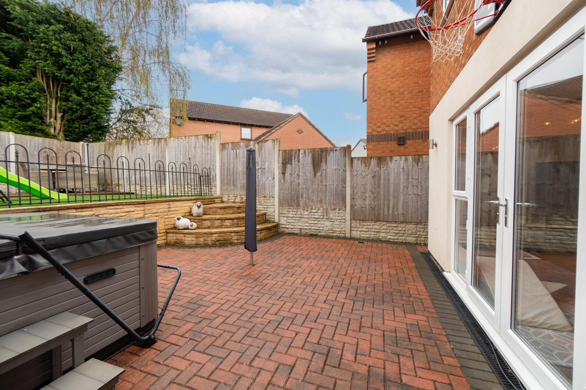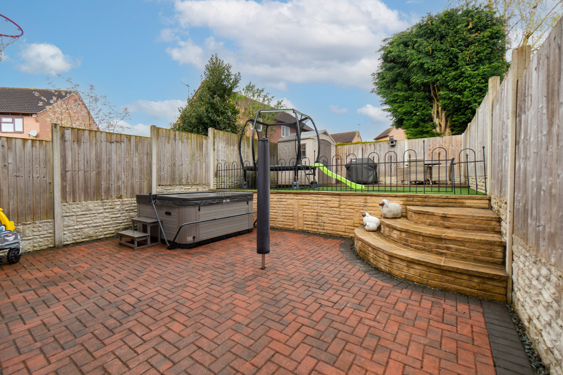Outside, the property a cleverly designed garden with a tiered level enjoying a morning coffee or watching the children play, the outdoor space is the perfect extension of the home's living areas.