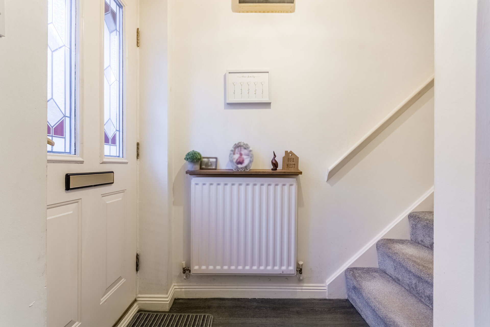 Front entrance door, radiator, stairs to the first floor, door to lounge.