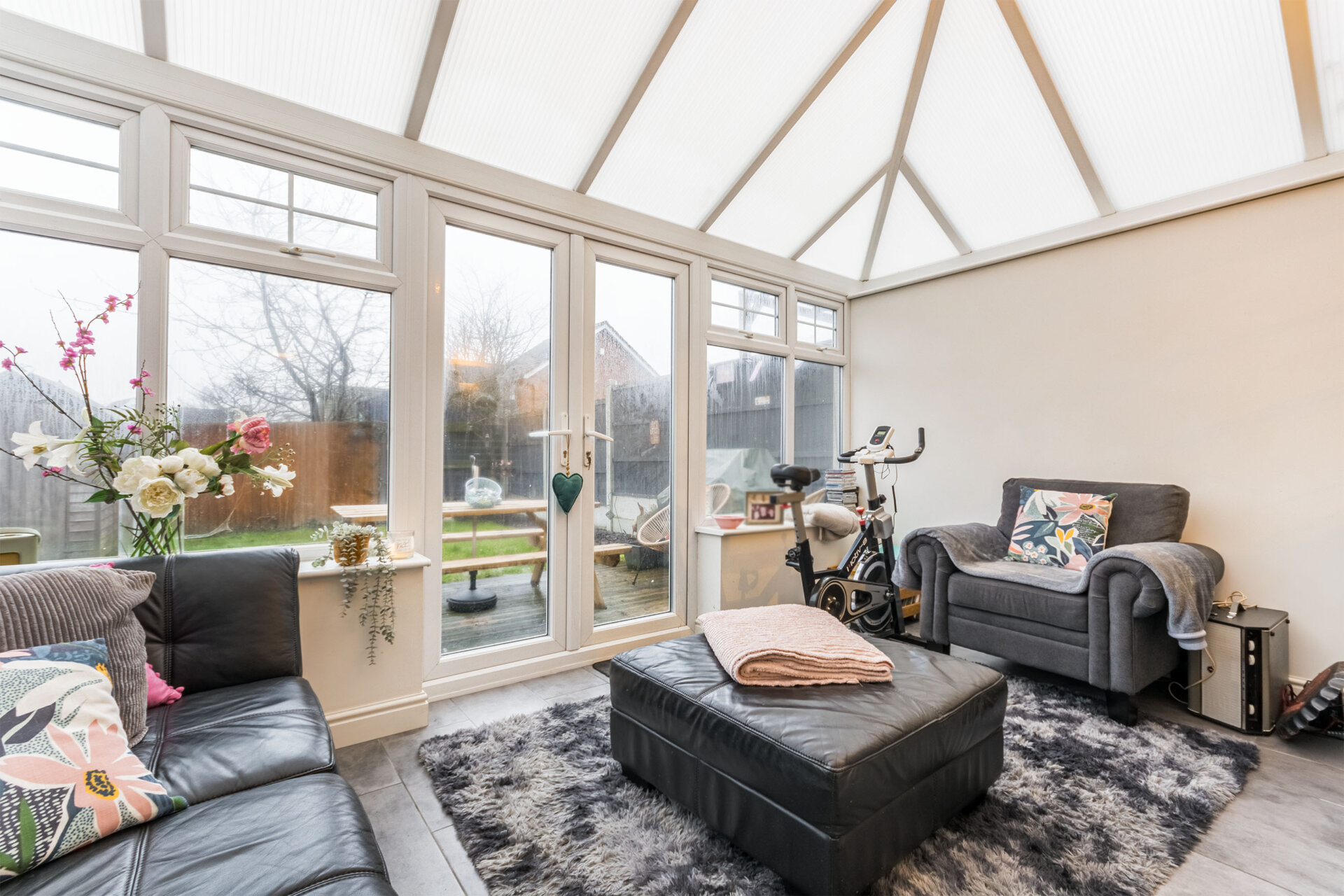Spacious garden room, double glazed and has French doors opening to the rear garden.