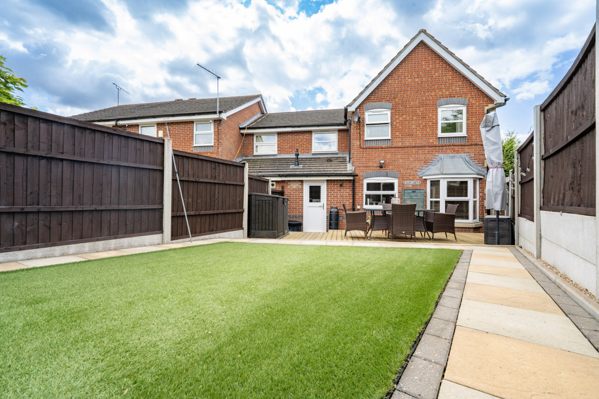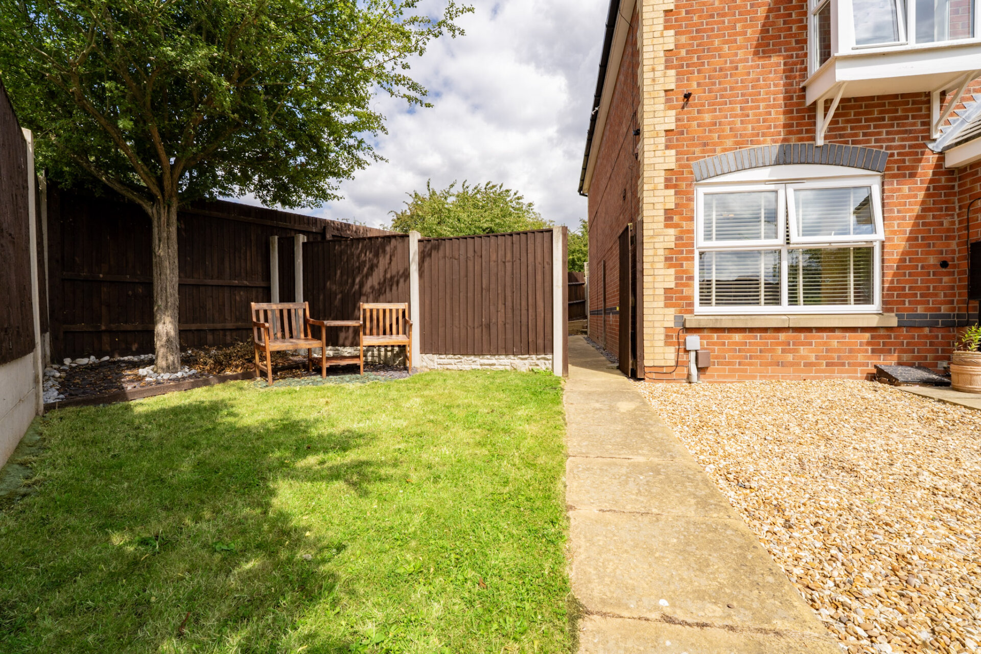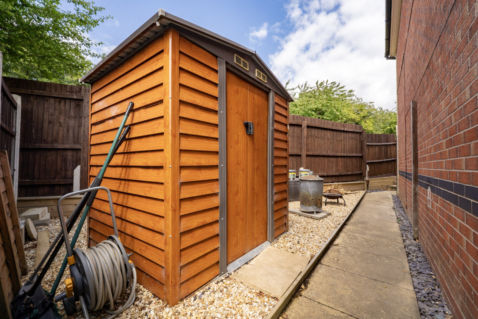 The exterior of the property further adds to its charm, with a low-maintenance front garden featuring a combination of gravel and lawn areas. A turning driveway provides ample parking for up to three vehicles, while a convenient side access gate leads to the rear garden. The professionally landscaped rear garden is a true oasis, complete with a full-width decking terrace designed for entertaining. A raised lawn bordered by attractive paving creates a picturesque backdrop, all enclosed by timber fence boundaries for added privacy. The outdoor space also includes an outside shed, lighting, and tap for added convenience. A well-utilised side garden space offers ample storage options, with a space for a good size shed. This property embodies the perfect balance of indoor comfort and outdoor relaxation, promising a delightful living experience for its new owners.