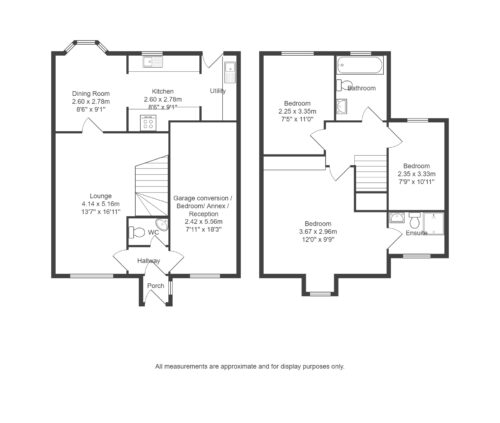 With composite door leading in from the front elevation, double glazed obscured window to the side elevation, wall mounted radiator and internal oak doors provide access to the ground floor bedroom (converted garage), WC and living room