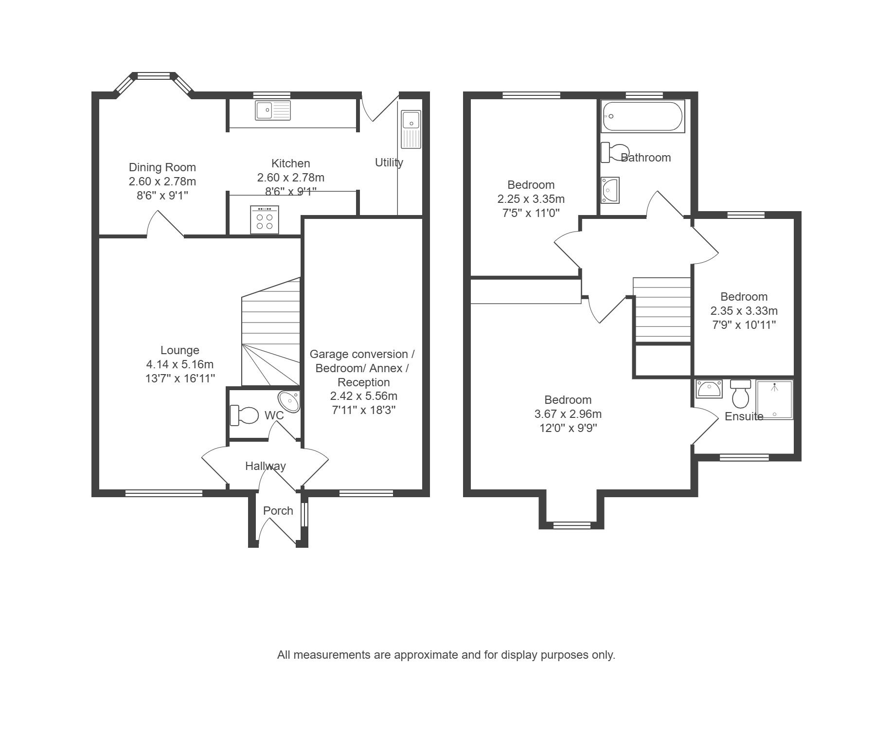 This spacious room benefits from a warm mounted radiator and double glaze window to the front elevation. The vendors son is currently using this space and it makes an ideal teenage or granny annex.