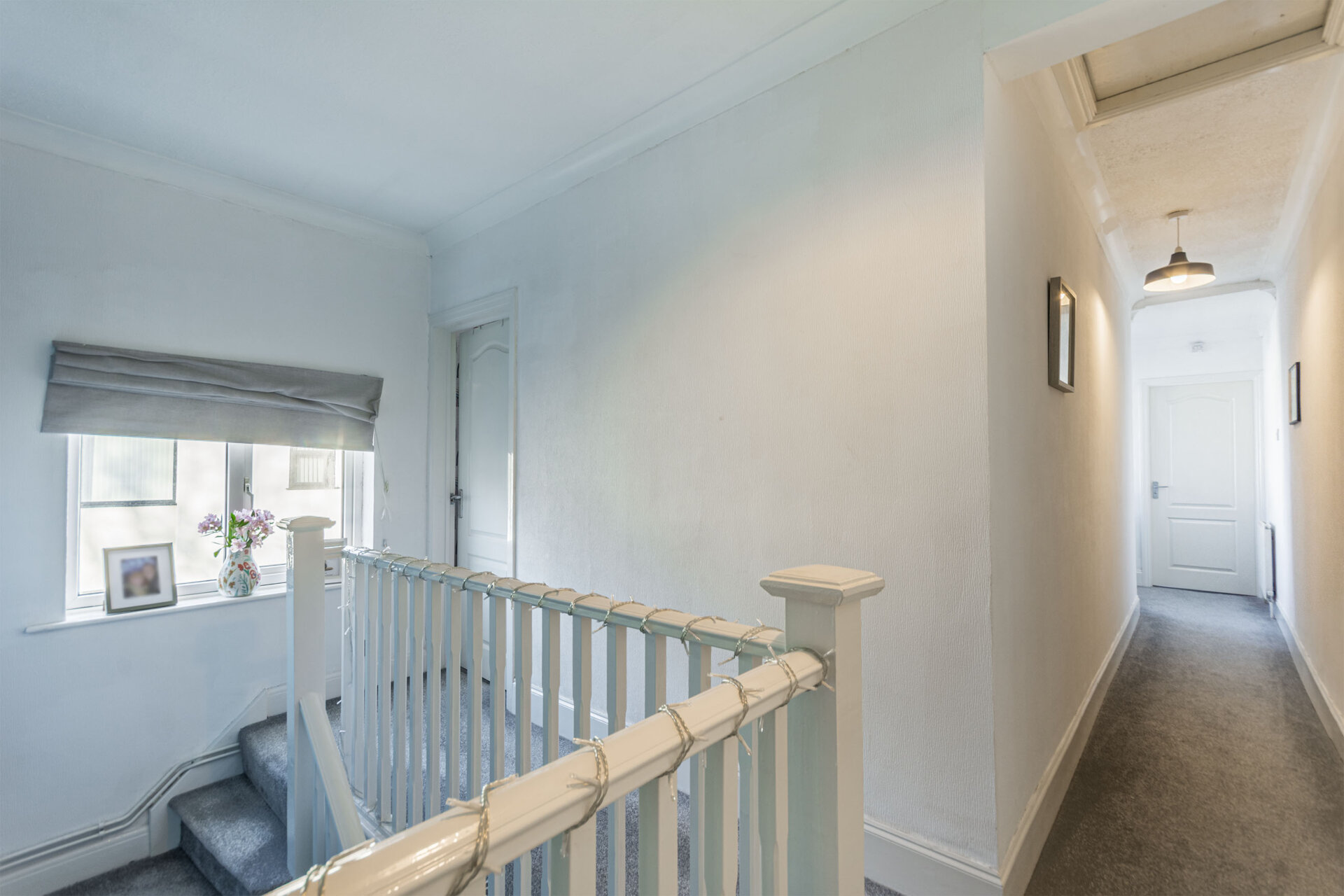 Stairs and Landing, 12'7 x 6'0 (19'2 x 2'7 opening to 7'6) With carpet to both, double glazed Windows to the left elevation, Radiator. Continued Corridor to an opening with another double glazed window to the left elevation and radiator.