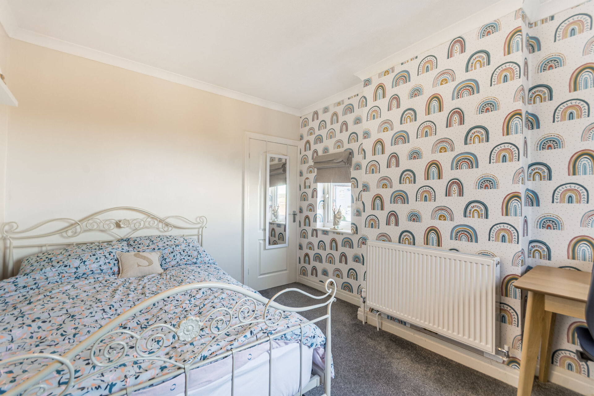 A great sized double bedroom with large double glazed window to the front elevation, Chimney breast with recess alcove to either side, radiator and carpet flooring.