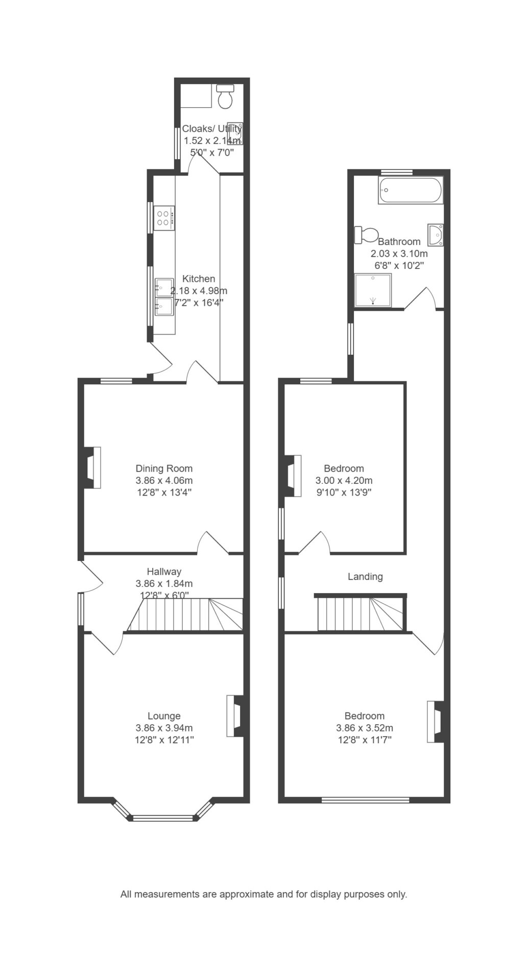Stairs and Landing 12' 7" x 6' 0" (3.84m x 1.83m)