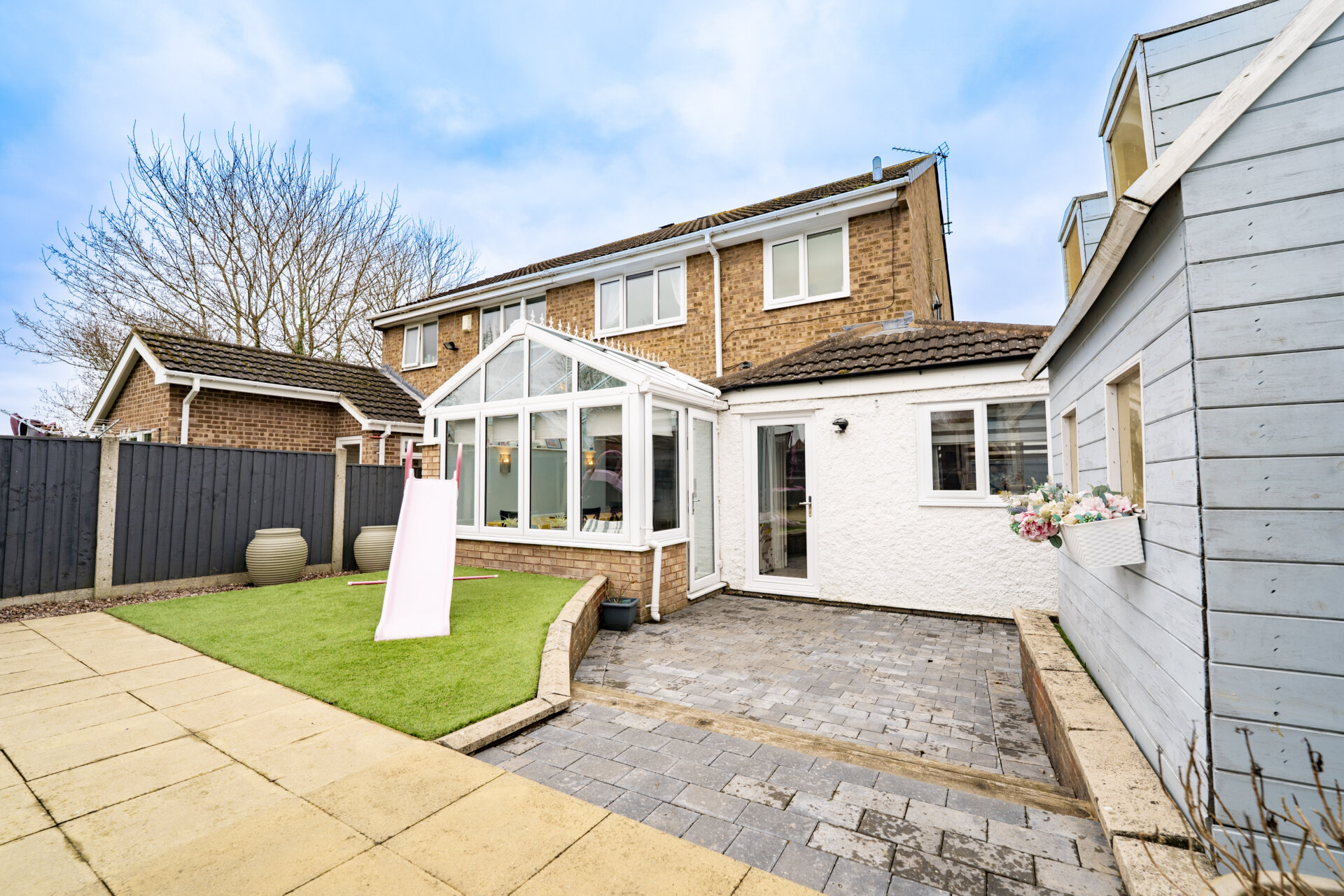 Outside, the property impresses with a block paved driveway leading to a side elevation that provides ample space for parking multiple vehicles. From here, the low-maintenance rear garden beckons with a block paved patio leading to astro turf and a secondary patio area. Two garden sheds offer additional storage space, while an outside tap provides added convenience. Not overlooked, the green space at the back makes this outdoor space a true oasis in the heart of Shipley View. Don't miss out on the opportunity to call this property home and enjoy the best of indoor-outdoor living in this delightful setting.