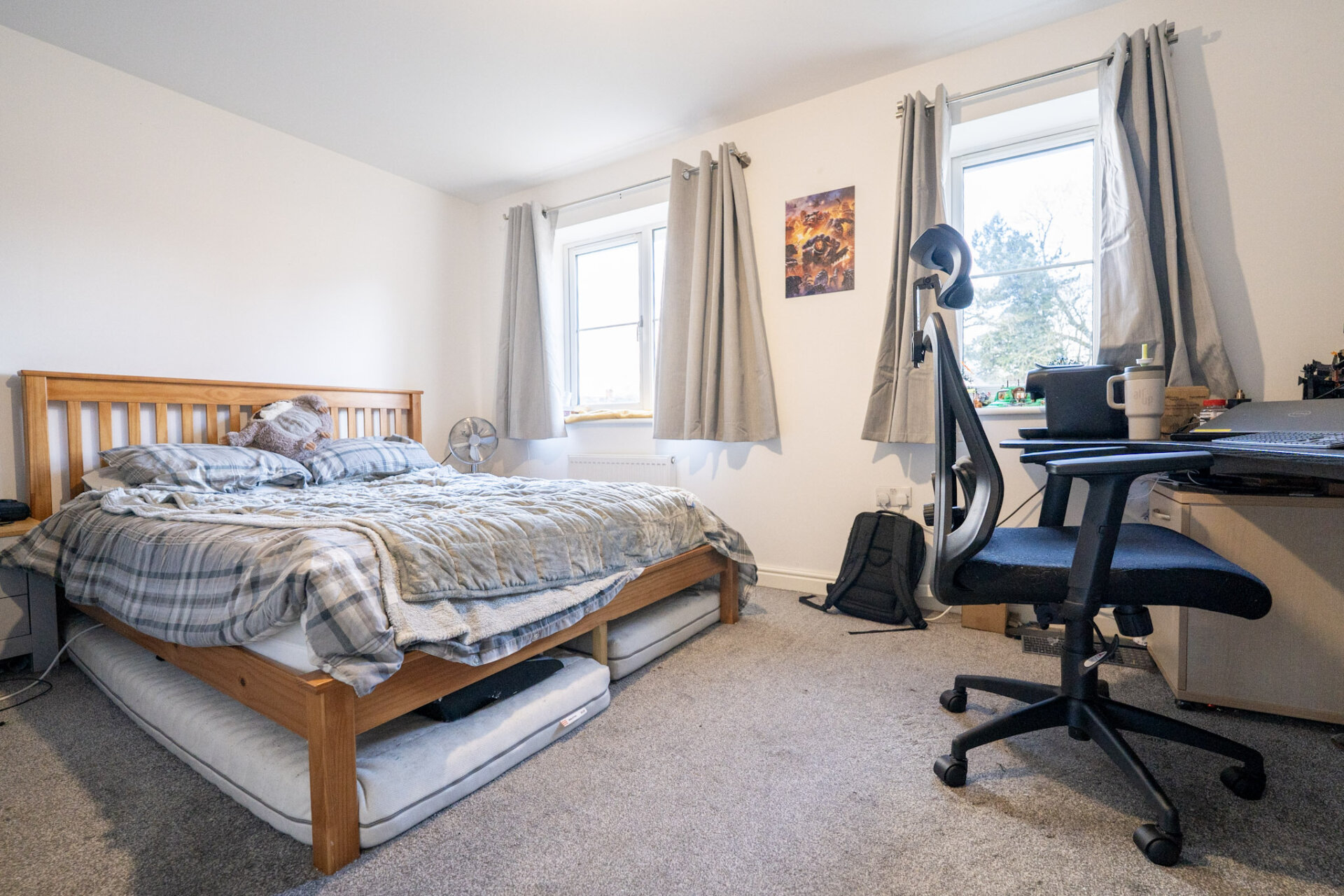 A great size double bedroom with carpet flooring, two double glazed windows to the front elevation and radiator.