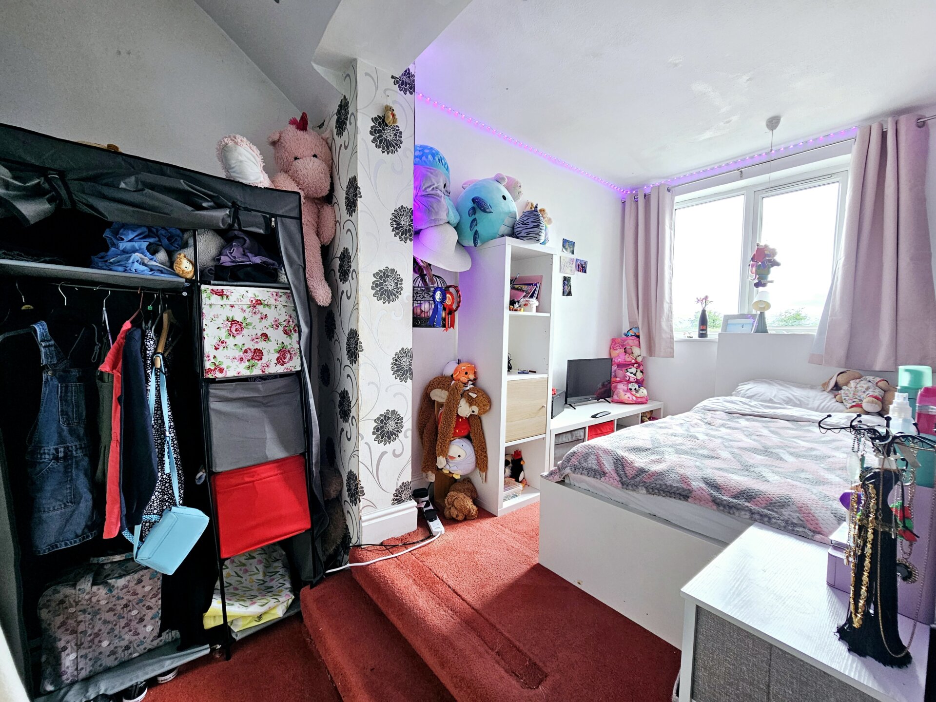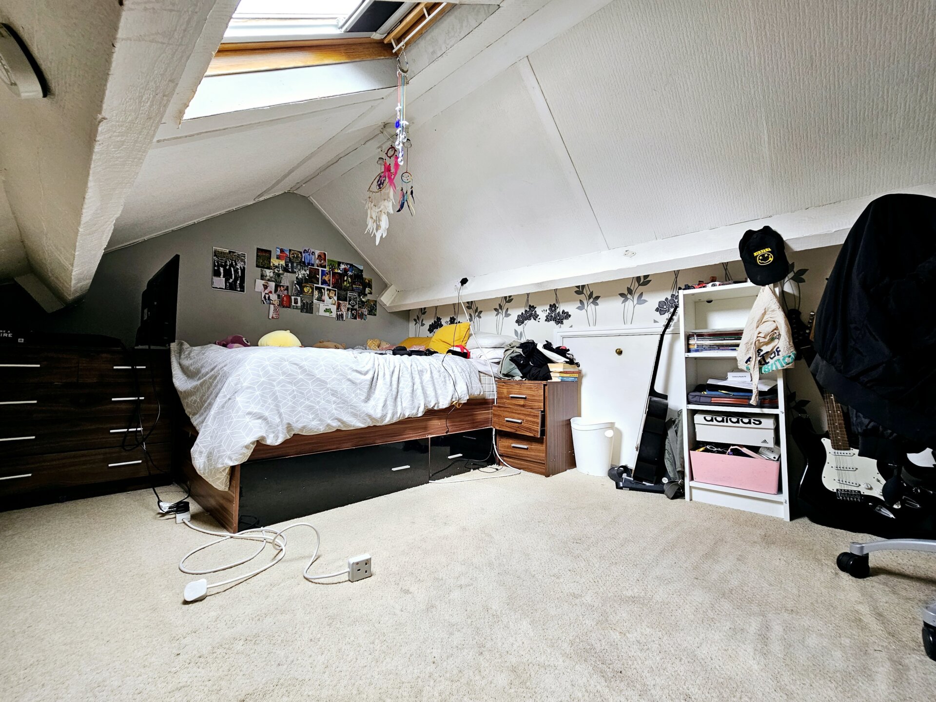 This loft space is currently used as a bedroom with carpet flooring, power and lighting, 'Velux' window to the rear. x2 storage cupboards to the eaves. Please note ; no building regs. Although a very useful space.