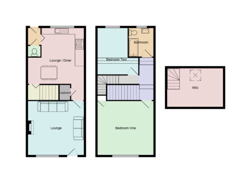 In brief this property comprises; Lounge, Kitchen open to dining room, rear corridor/ cloaks, downstairs w.c, stairs ascending to first floor, generous main bedroom, second bedroom and bathroom, stairs ascending to the attic which is a fantastic extra space.