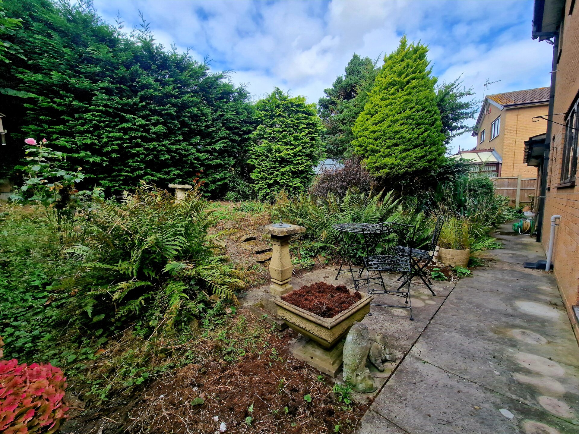 The property benefits from well-established gardens to the front and rear, providing a tranquil outdoor space perfect for relaxation. Additionally, the driveway for two cars and triple parking garage offer ample parking options. This home within walking distance to bus links, the town centre with shops, pubs, coffee shops and bistros, supermarket, Hospital, local doctors, a local train station, excellent commute links and the massive benefit of 'no upward chain' is sure to attract those looking for a blank canvas to create their dream home.