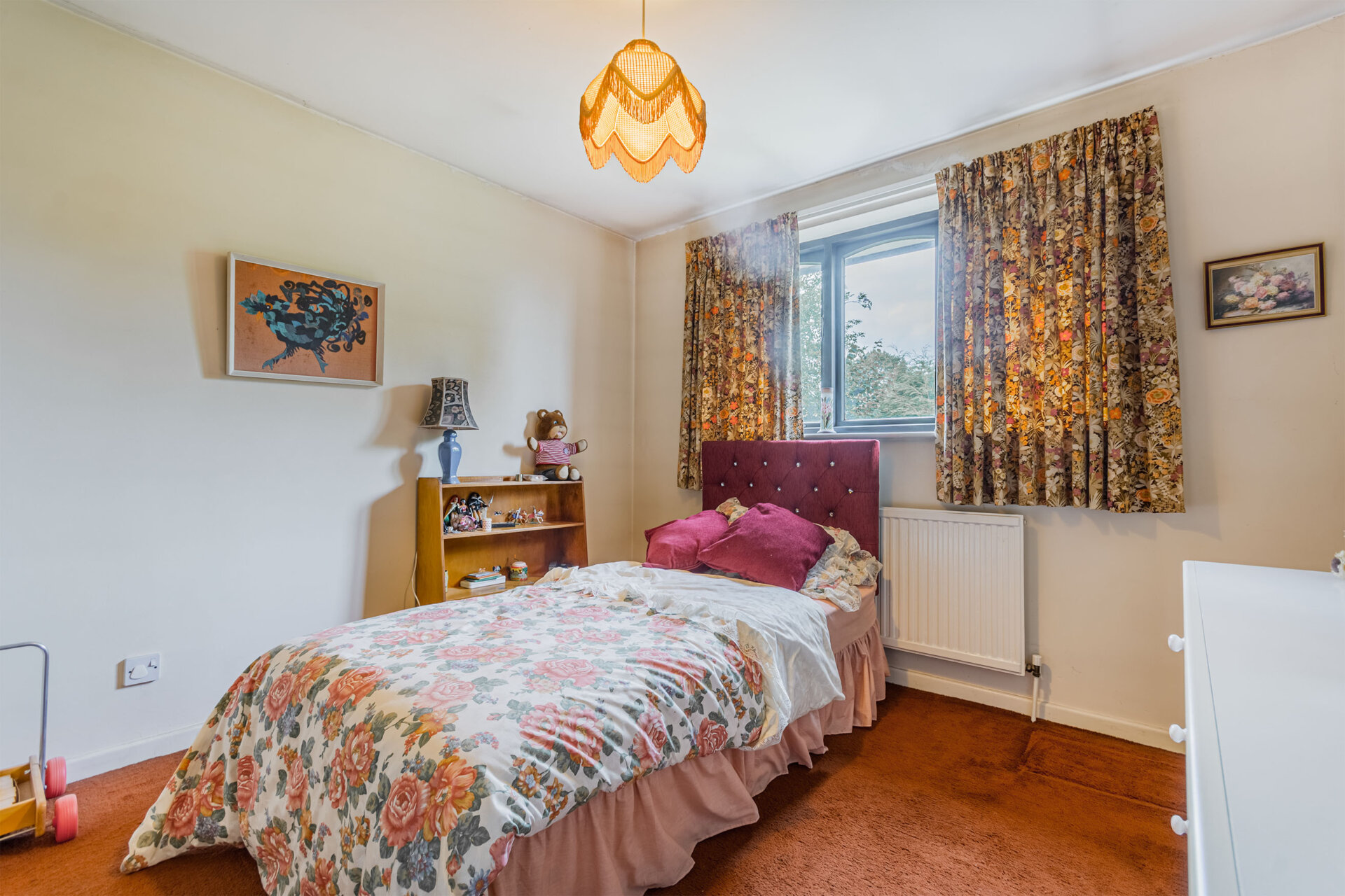 Another double bedroom with double wardrobe, carpet flooring, radiator and window to the rear elevation.