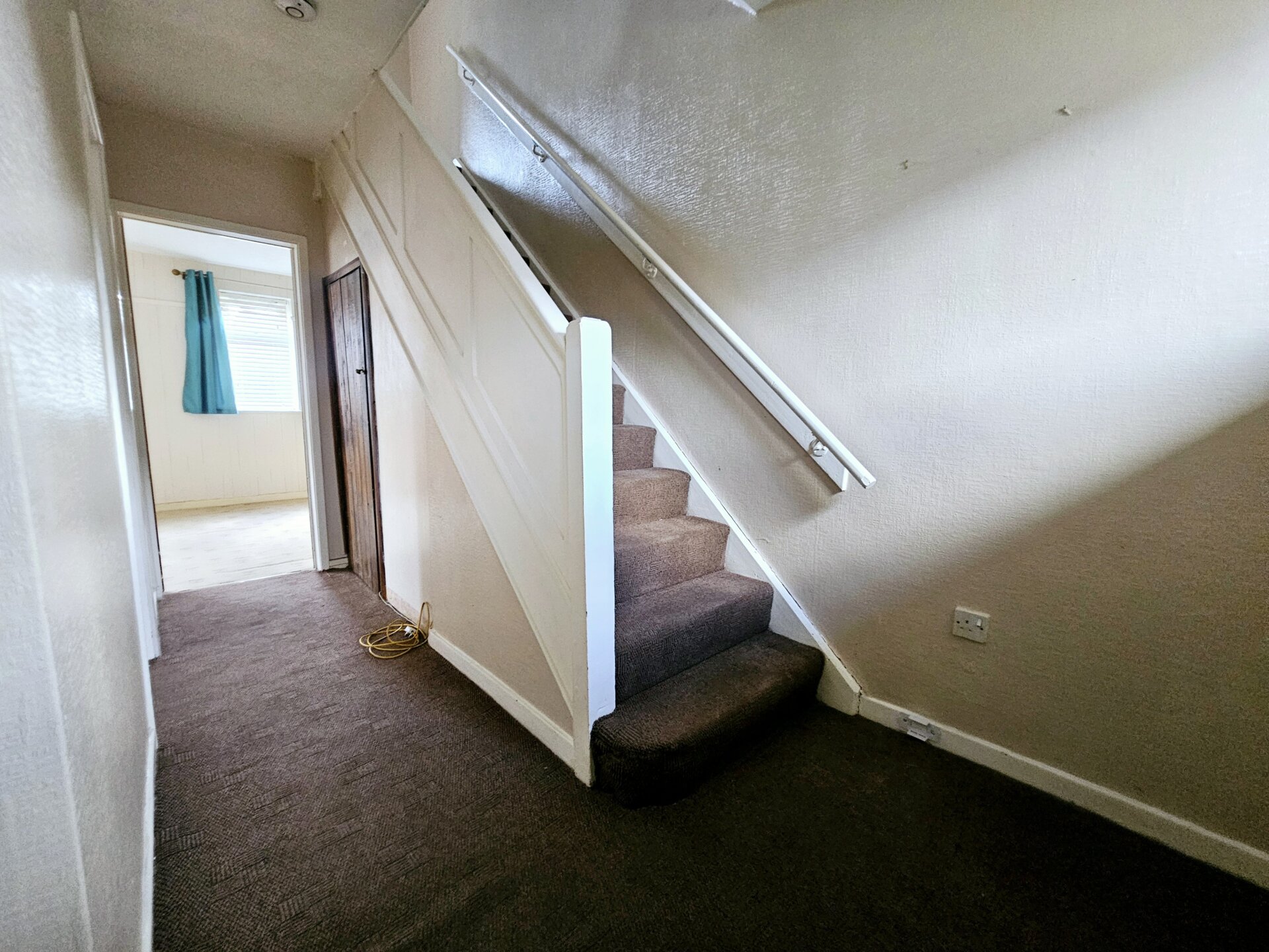 Double glazed door to enter with carpet flooring, double glazed window to the front elevation, understairs cupboard, stairs ascending and doors to kitchen and lounge.