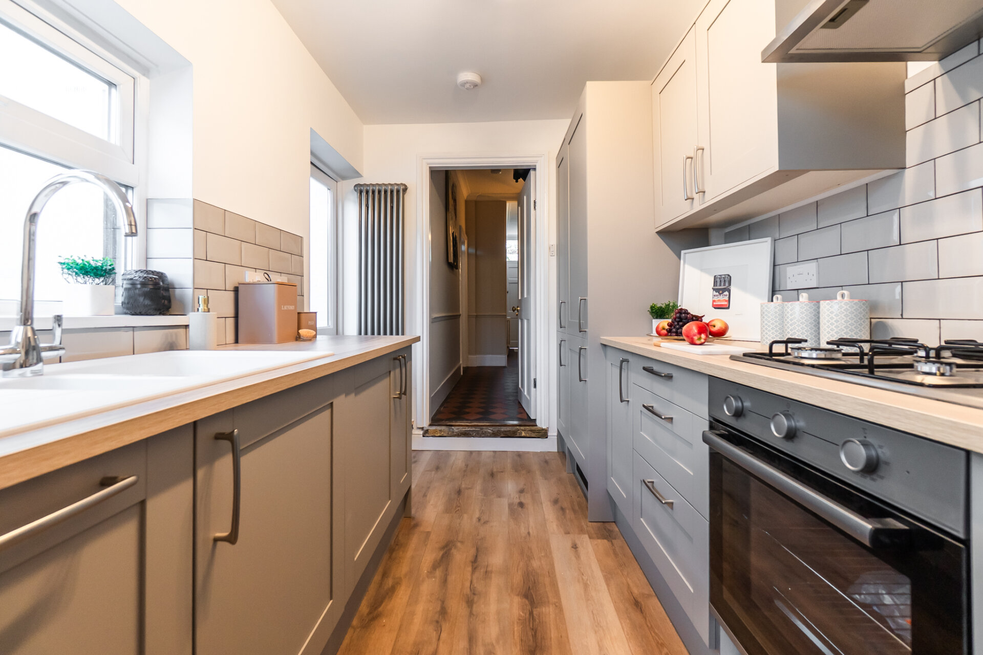 This beautifully presented period mid terrace has been newly refurbished from top to bottom. Now offering the perfect turn key property for any prospective buyers; inviting, warm and simply stunning throughout. It is positioned just south of the town centre positioned perfectly to take advantage of being within strolling distance to both the town centre and the train station. Having just been renovated throughout, the property is simply a new home within a period shell boasting character features throughout, well proportioned reception rooms with tall ceilings and scrumptiously decorated with Farrow and Ball tones. Having a large living room to the front, a dining room with access into the garden and a newly fitted and fully integrated kitchen. The first floor continues with the exceptional finish having two double bedrooms and a modern newly fitted bathroom. You are not short of storage neither as there is a large attic together with two large brick built storage sheds in the garden. This property also benefits with no onward chain and offers the perfect and simply move in property for all potential buyers. All appliances are under warranty as to is the newly fitted combination boiler. Externally there is a great sized garden with lawn, stocked borders and seating areas not to mention an abundance of storage on offer.