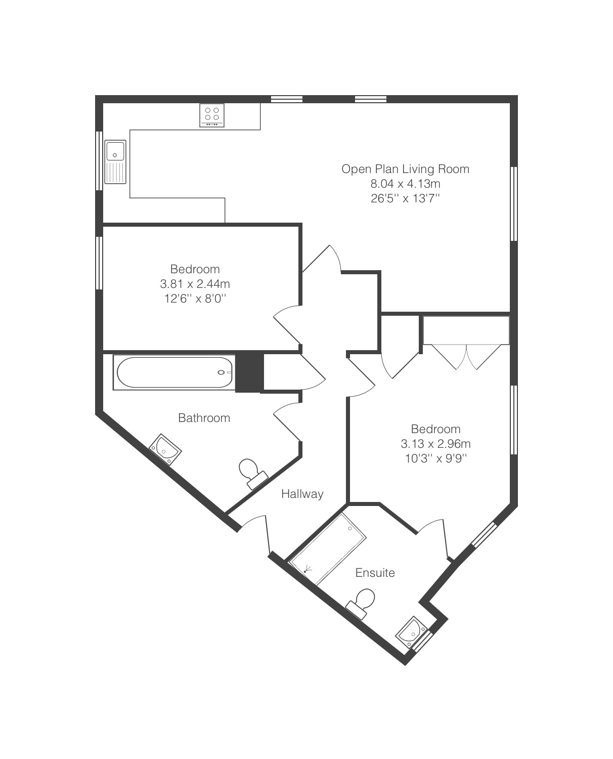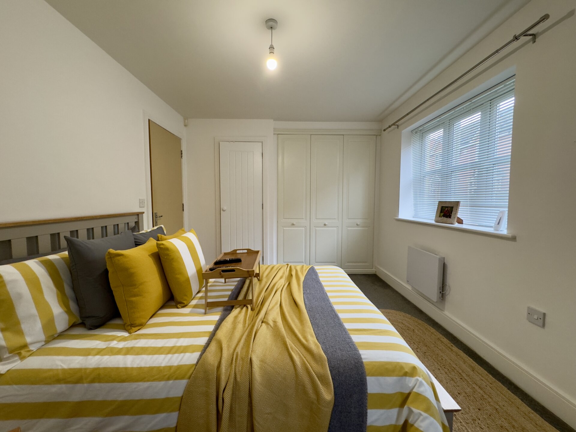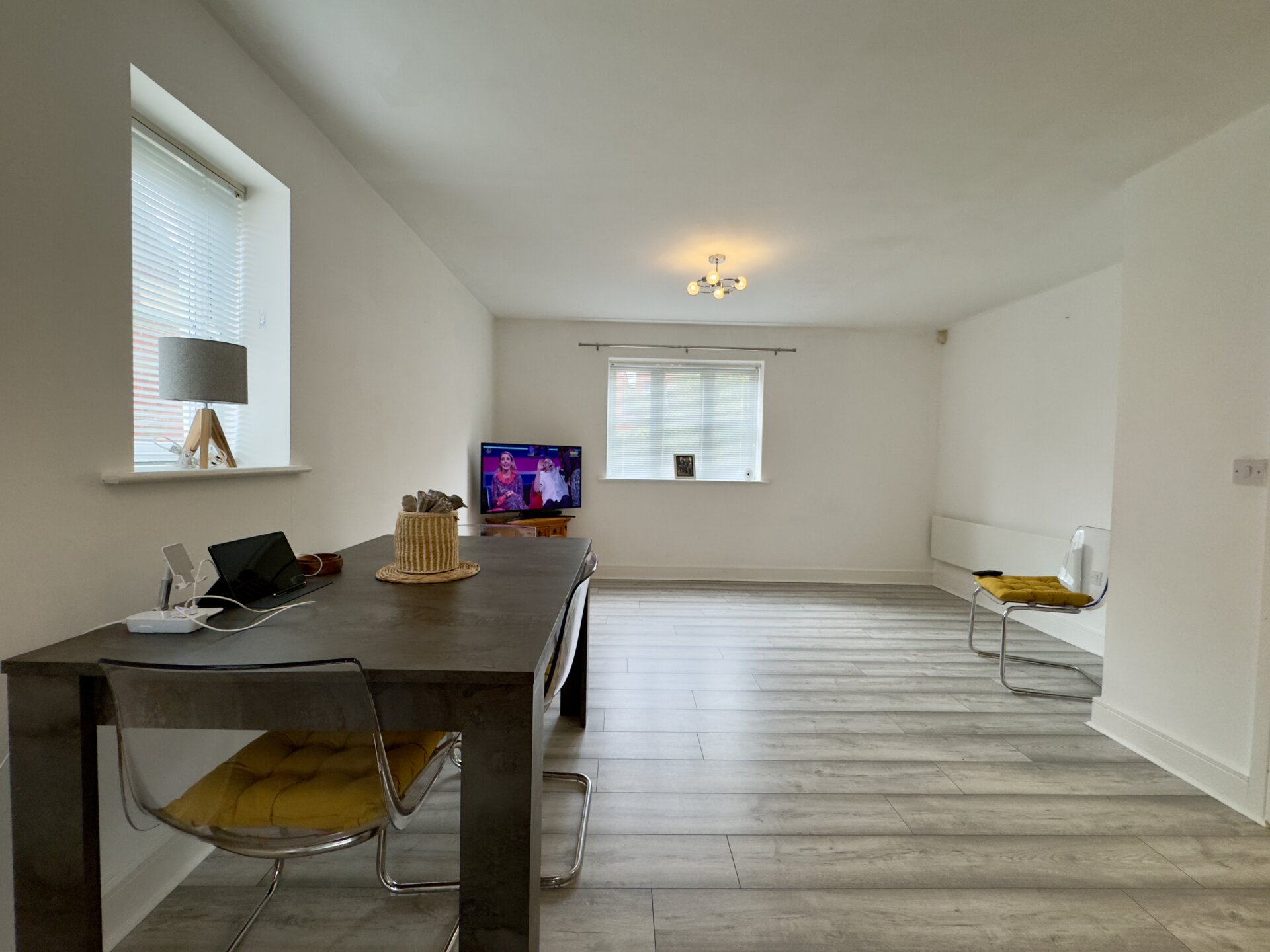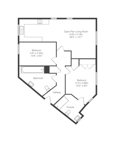 Upon entering the property, you step into the entrance hall which has a useful storage cupboard and gives access to all rooms. The open plan living area is a nice size and bright due to having dual aspect windows letting in an abundance of light. The kitchen is fitted with a range of modern wall, base and drawer units with an ample amount of work surface over. The kitchen is complete with an integrated oven and hob with cooker hood over. There’s also space for all of the usual kitchen appliances.