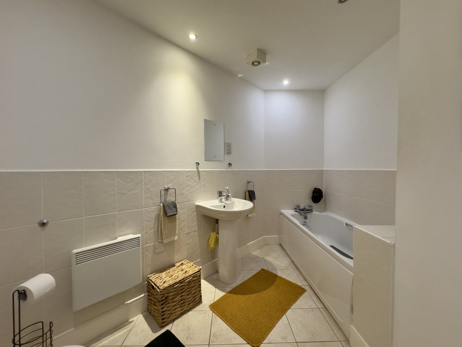 There are two double bedrooms, the main one having built in wardrobes and en-suite shower room. The generous size bathroom is fitted with a white three piece suite and finished with complementary wall tiling.