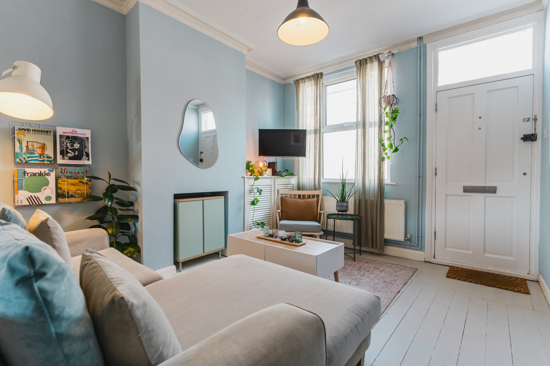 Set within a handsome row of Victorian terraces, this immaculately refurbished two-bedroom home is a thoughtful study in period architecture and contemporary design. The current owners have undertaken a sensitive and comprehensive renovation, resulting in a calm and cohesive interior that feels both welcoming and refined. Carefully considered materials, a soft tonal palette, and well-preserved original features work together to create a home of understated elegance and functionality.