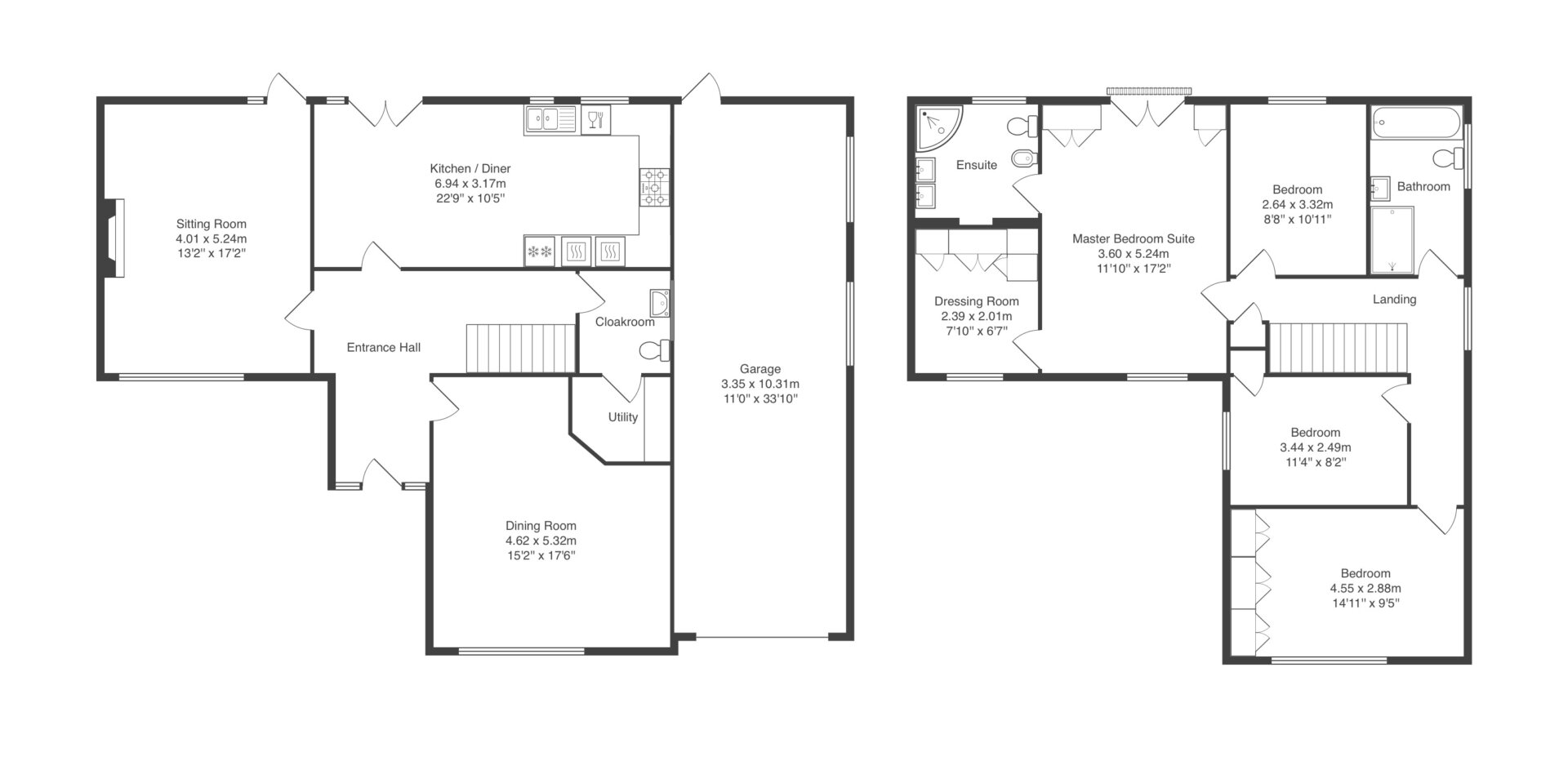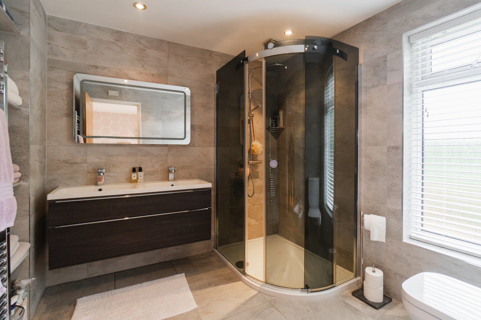 Ascend to the first floor where you’ll find four well proportioned bedrooms along with a family bathroom. The master suite is generous in size and features a Juliet balcony with stunning views of the rear garden. A dressing room and en-suite shower room ensures comfort and convenience for residents. The main family bathroom is fitted with a modern four piece suite and finished with complementary floor and wall tiling.