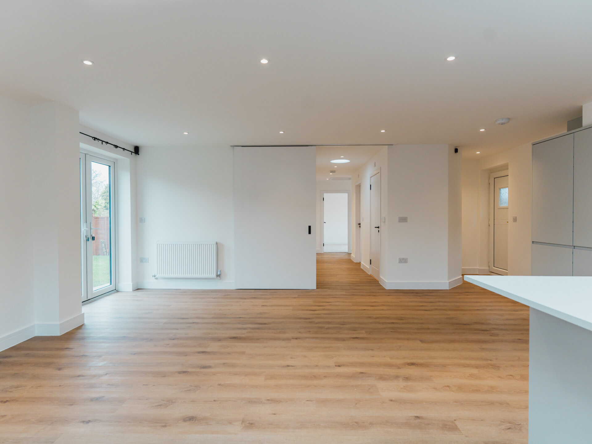 The result of a back to brick renovation and impeccable attention to detail, a newly refurbished and extended three-bedroom detached bungalow refurbished by award-winning Messrs Ophelia Homes Ltd. With no expense spared, the property allows natural light to take centre stage and is perfectly suited with local amenities just 10 minutes away. Woodland Grange Primary School (Ofsted-rated ‘Outstanding’) is a short stroll away from the property, while Leicester Grammar School is conveniently located in nearby Great Glen. This exceptional homes unfolds over a single storey and creatively embraces a minimal palette of contemporary material with a large open-plan breakfast dining kitchen to the rear displaying leafy views over the South-West facing rear garden. With a primary focus on residential projects, the work of Ophelia encompasses both new builds and contemporary interventions within historical buildings. Much of the firm’s work lies within London where it has established a reputation for skilfully combining space, light, and form with a finely tuned material palette.