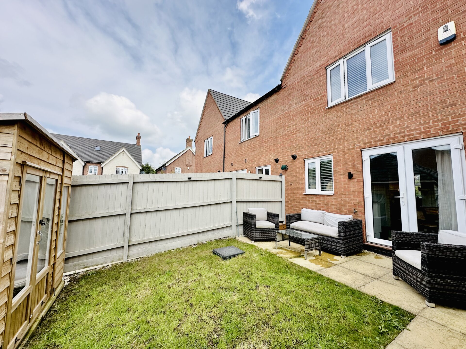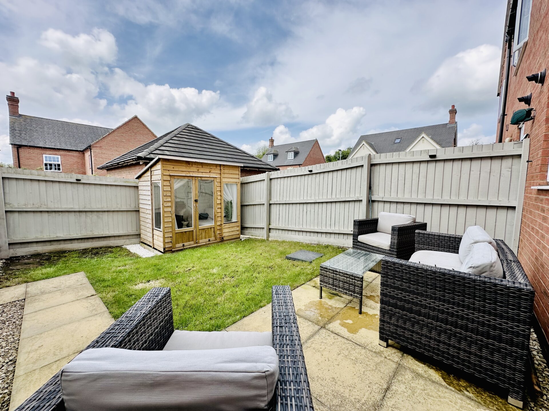 Outside to the front there is a double driveway providing off-road parking and a low level green border adding to the curb appeal. To the rear there is a patio area and a grass lawn leading to the summerhouse. The garden benefits from enclosed fencing and gated side access.