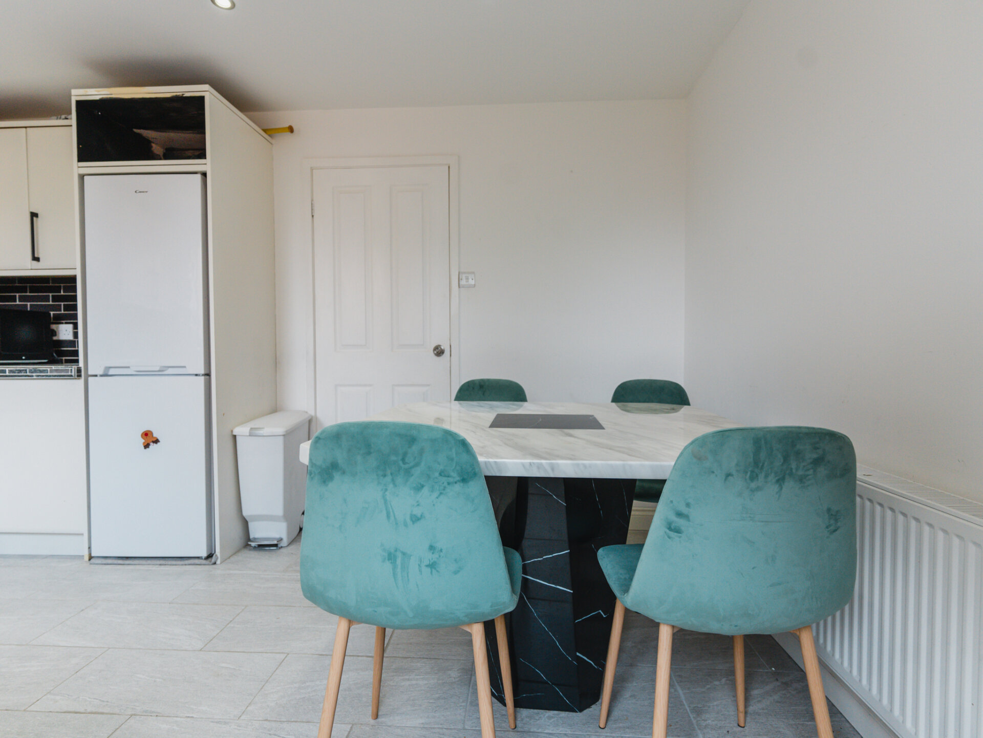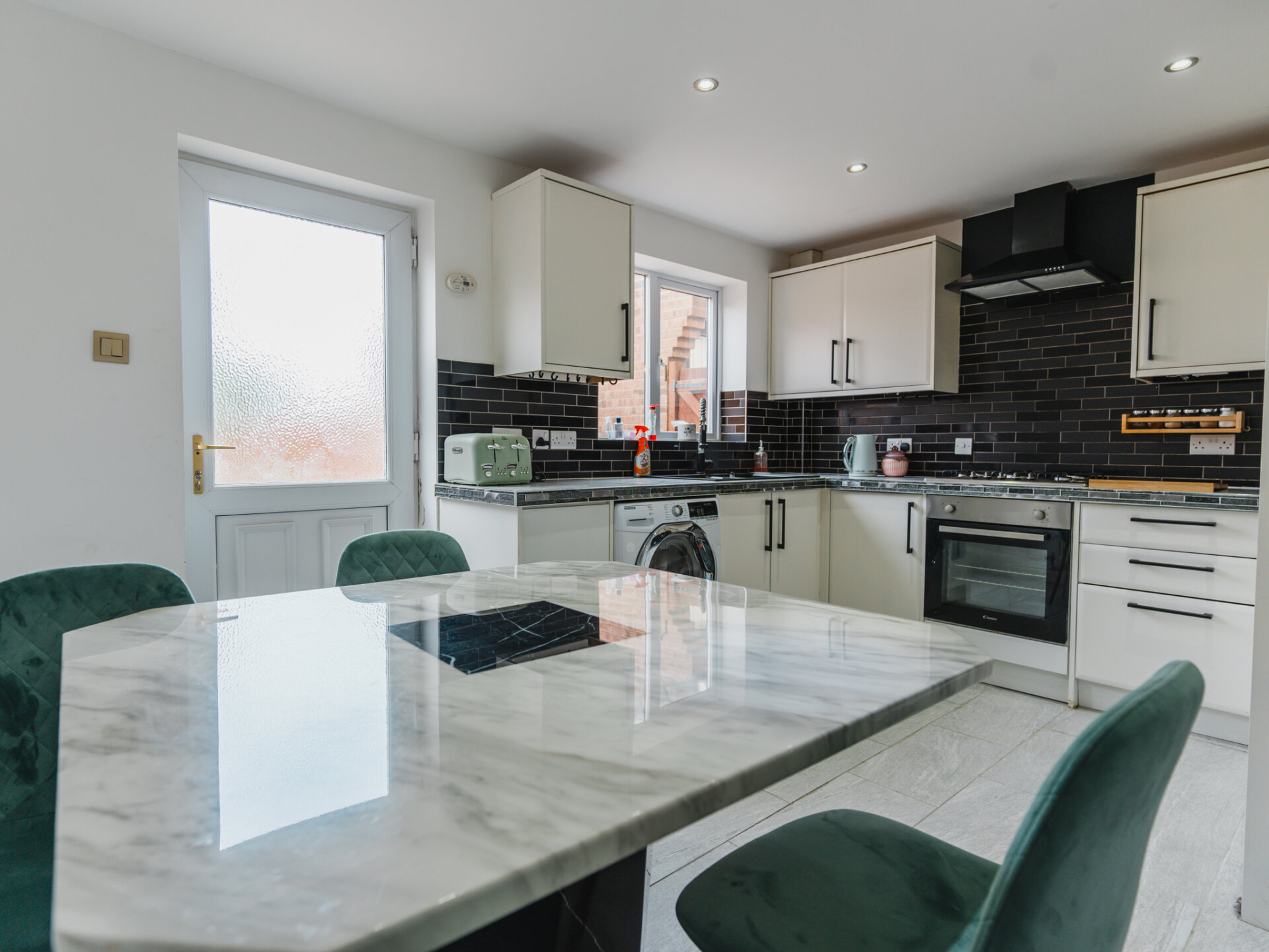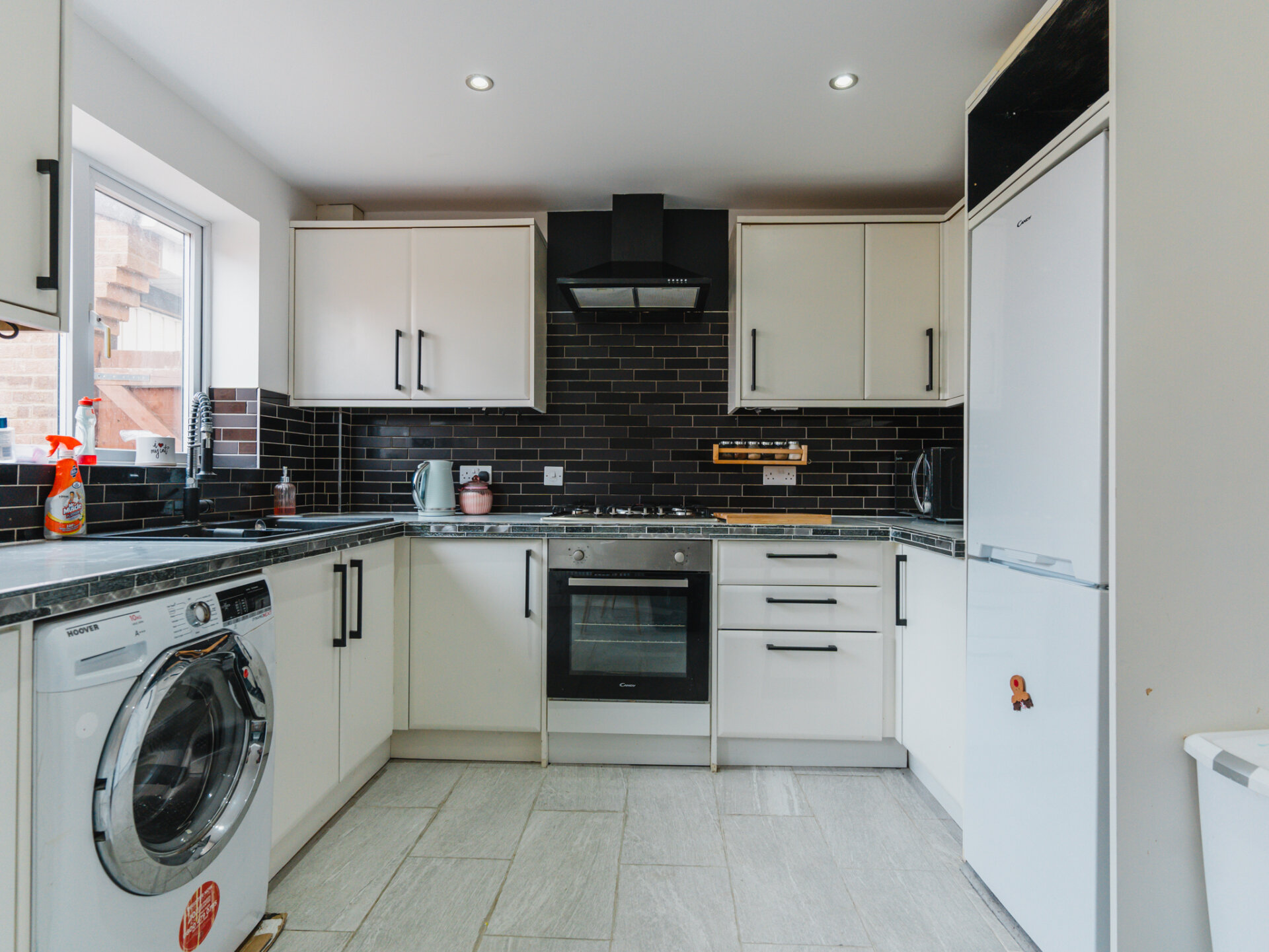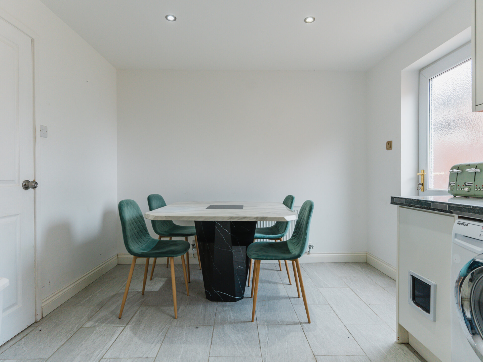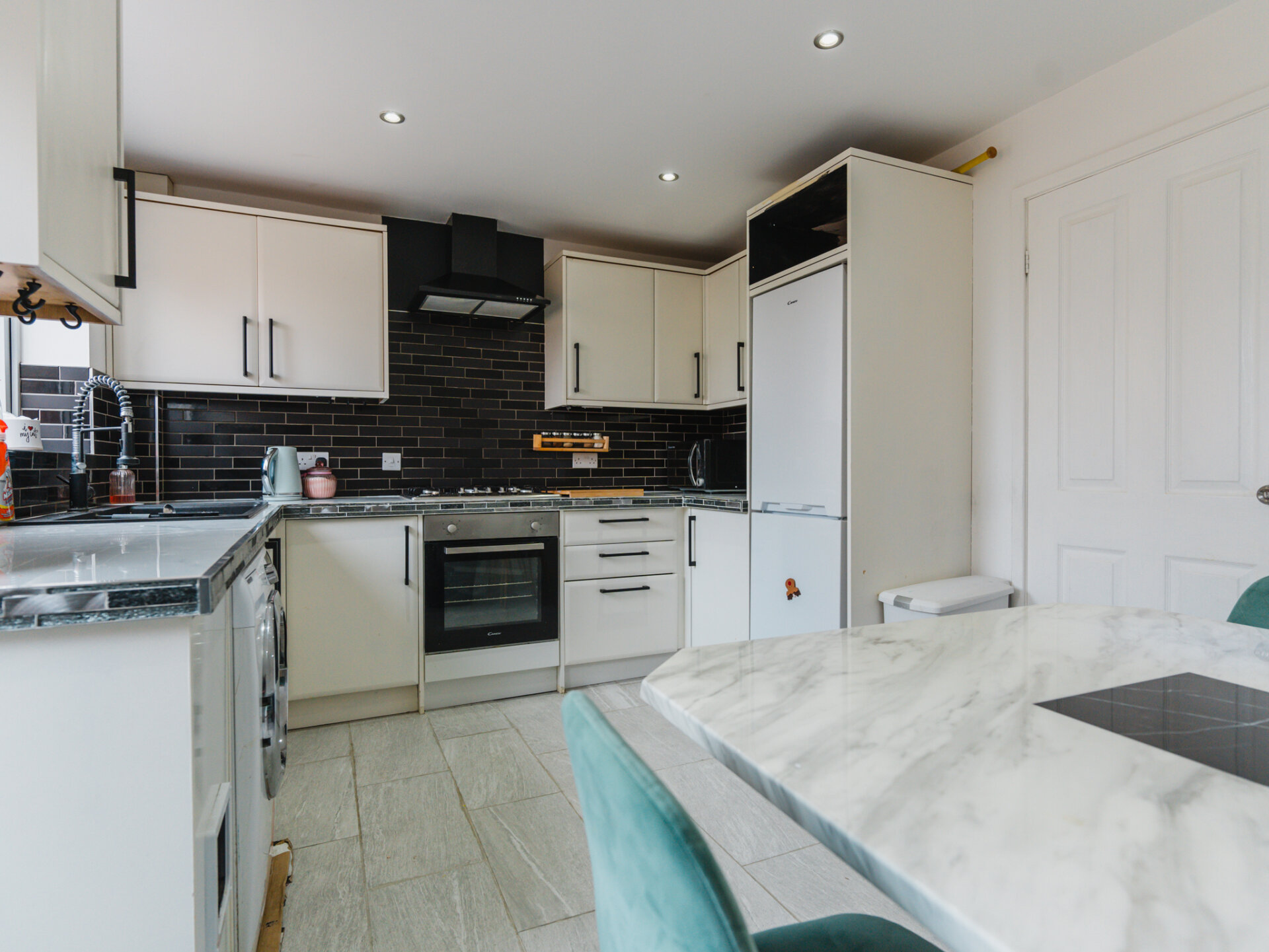 With a neat front-garden with a laid-to-lawn greenery, entry is through a uPVC door that opens to a front reception room. Bright, airy and neutrally decorated with stairs leading to the first floor and built-in storage, the space is well presented throughout with laminate flooring, access to a modern-fitted kitchen found to the rear of the downstairs plan and a large double-glazed window to the front aspect allowing an influx of natural light into the space. With an extensive range of wall and base level units, space for all necessary appliances and double-glazed windows overlooking the rear-garden, the kitchen is well equipped and provides further space for a dining table and chairs, with uPVC doors leading to the garden. The first floor accommodation has been configured to accommodate three bedrooms, all of which are presented in excellent condition. A three-piece family bathroom has been modernised in recent years and completes the accommodation on offer. To the rear, a well kept, private and low maintenance garden which is mainly laid-to-lawn is complete with a paved patio area and raised borders. A driveway to the front and a single-detached garage allow off-road parking for at-least two vehicles. The property also benefits from a newly installed boiler in 2021 and CCTV.