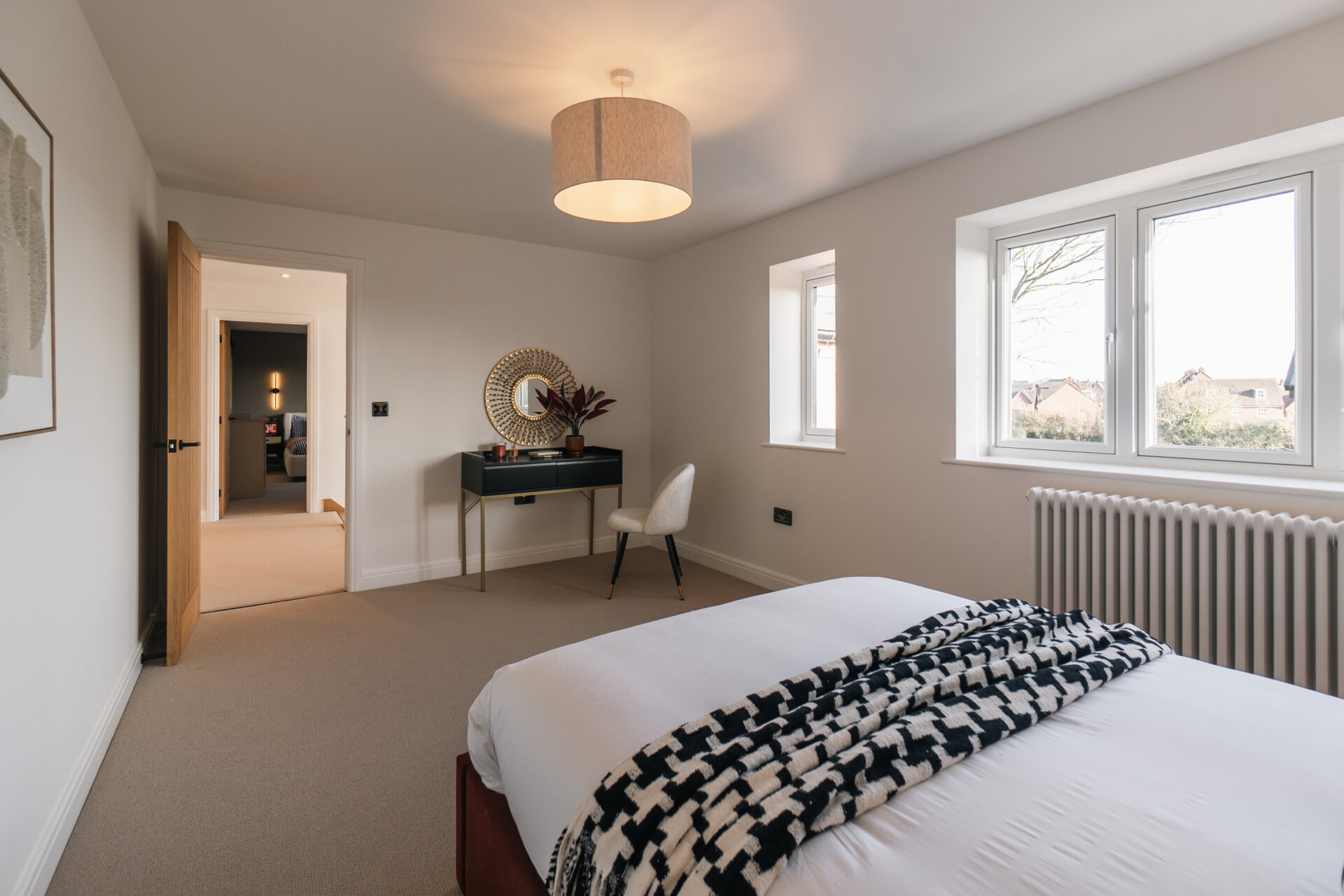 Bedroom two is another generous bedroom, complete with its own beautifully finished en-suite with Porcelanosa tiles, ideal for guests or family members seeking additional privacy.