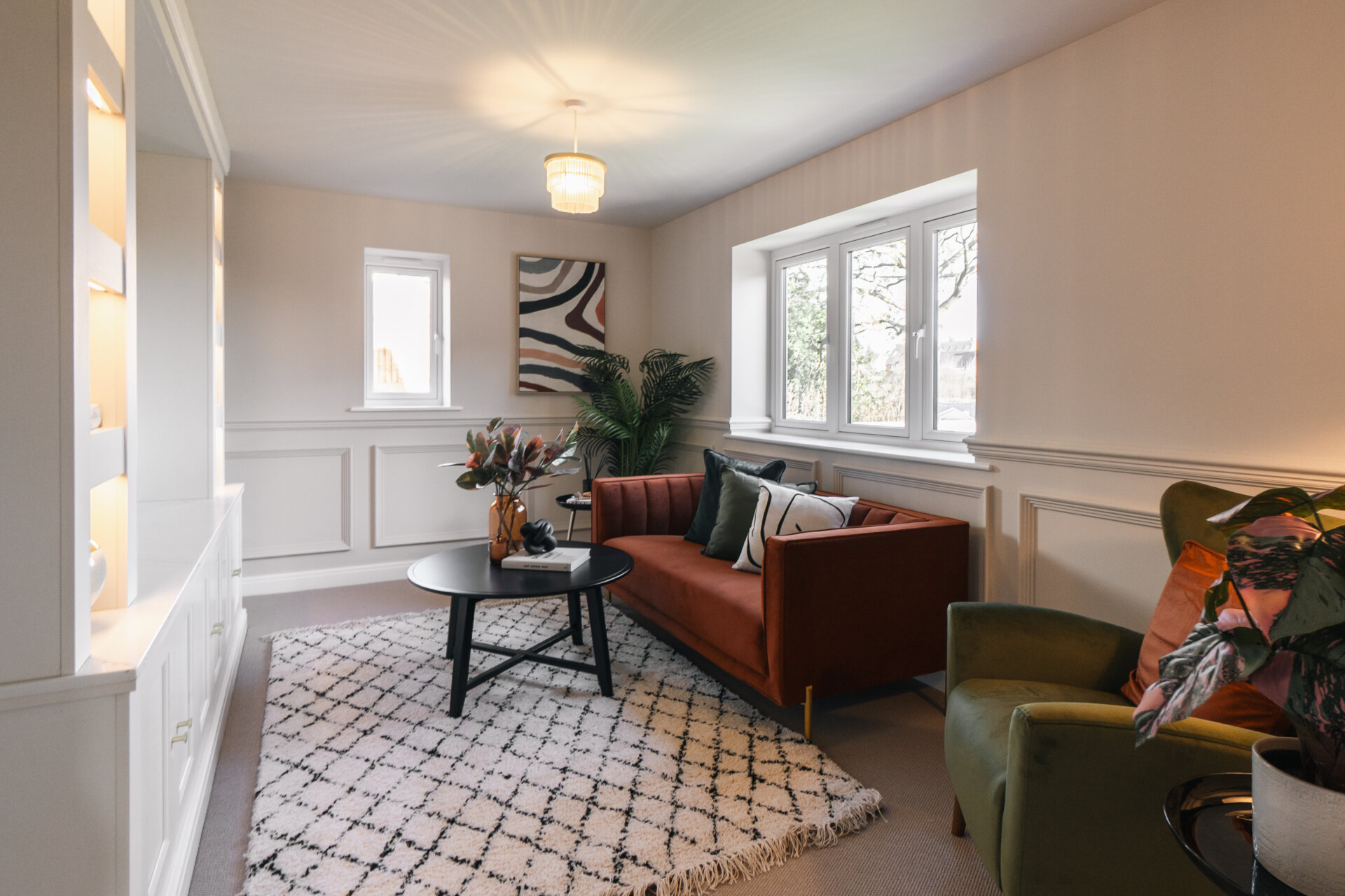 The lounge is generously proportioned and designed with comfort in mind. A feature log burnerinvites cosy evenings in, while the contemporary media wall comes fully integrated as standard - a further testament to the uncompromising vision of the developer.