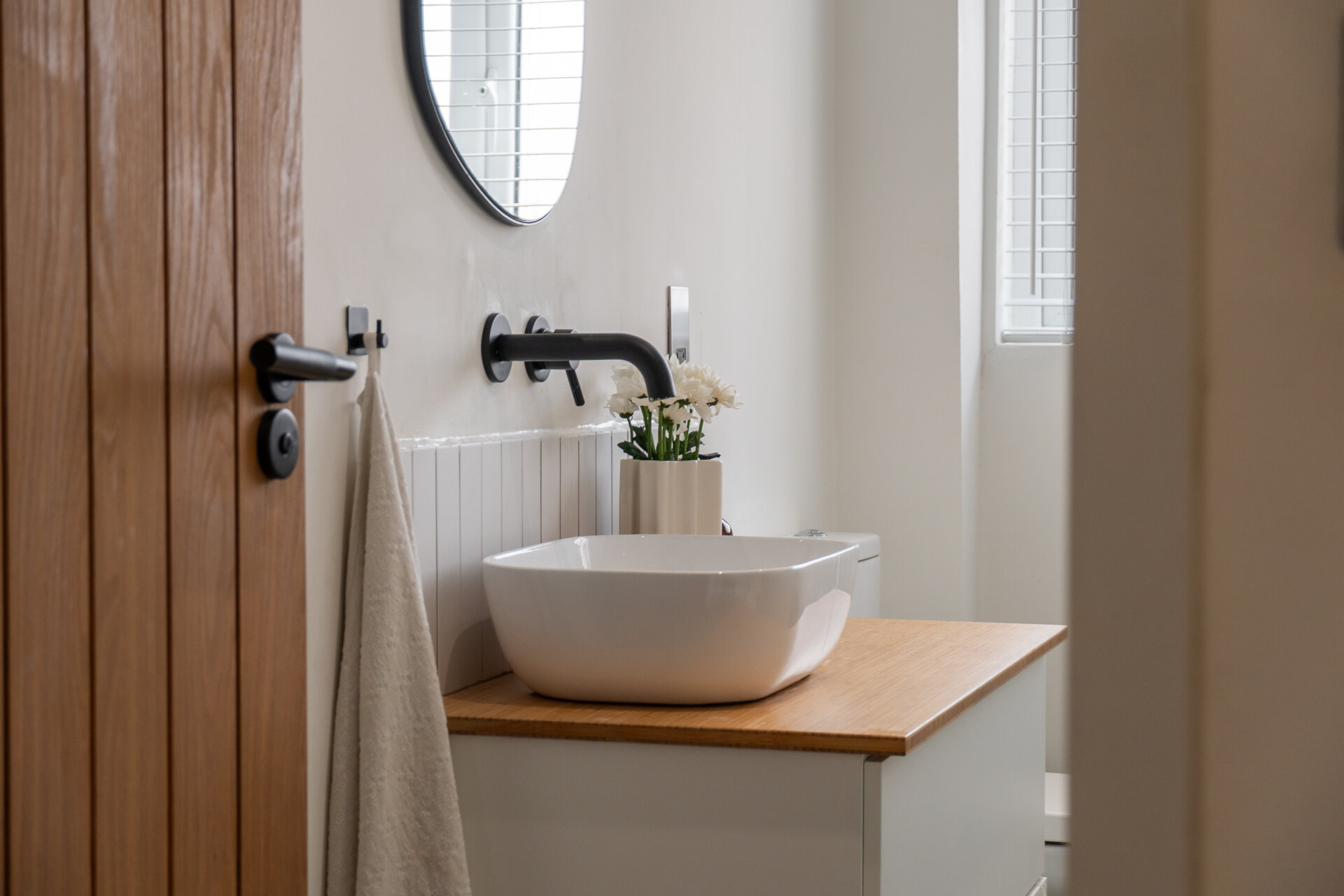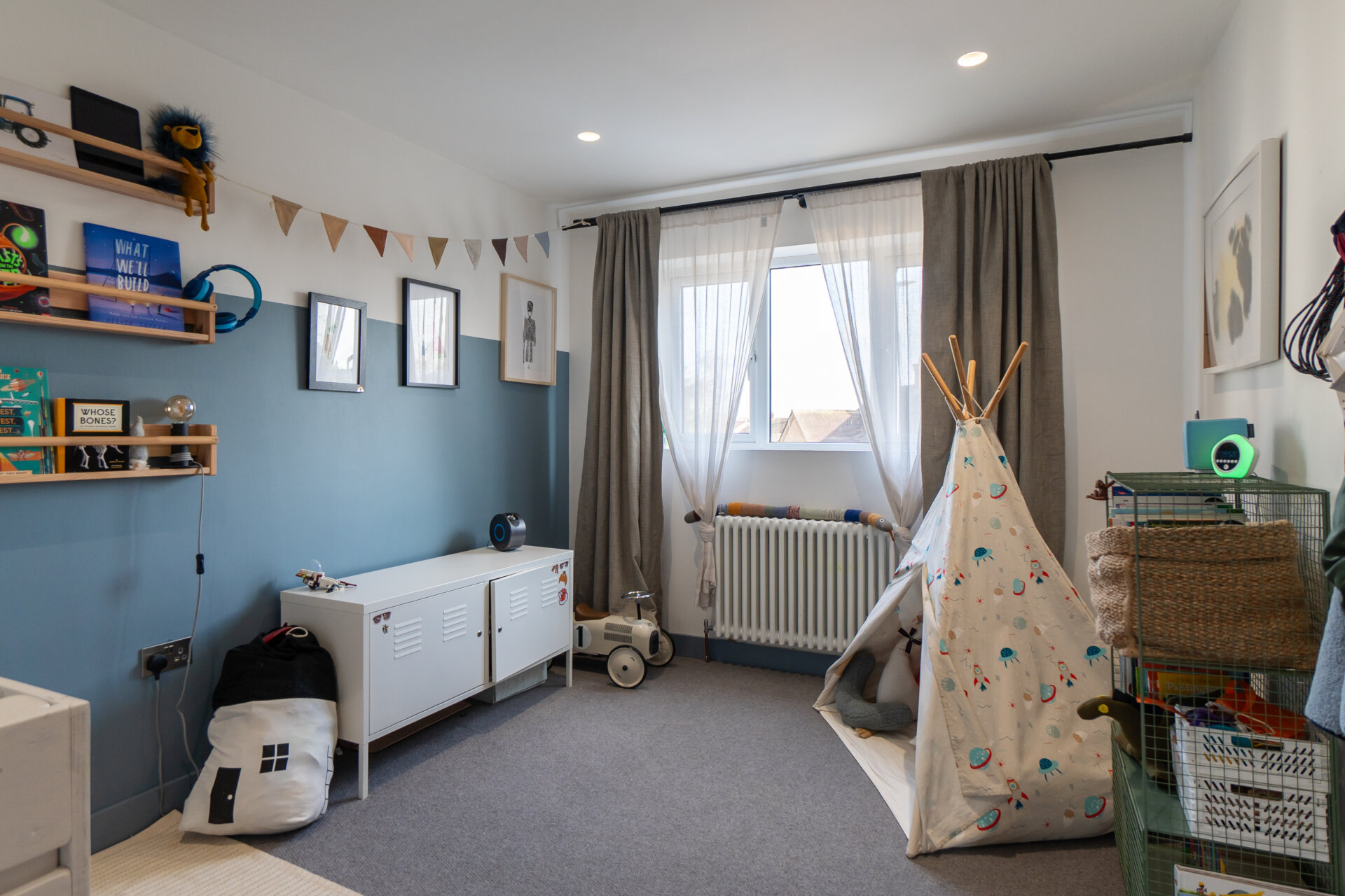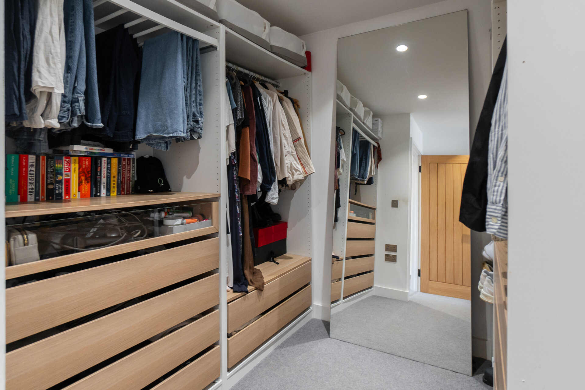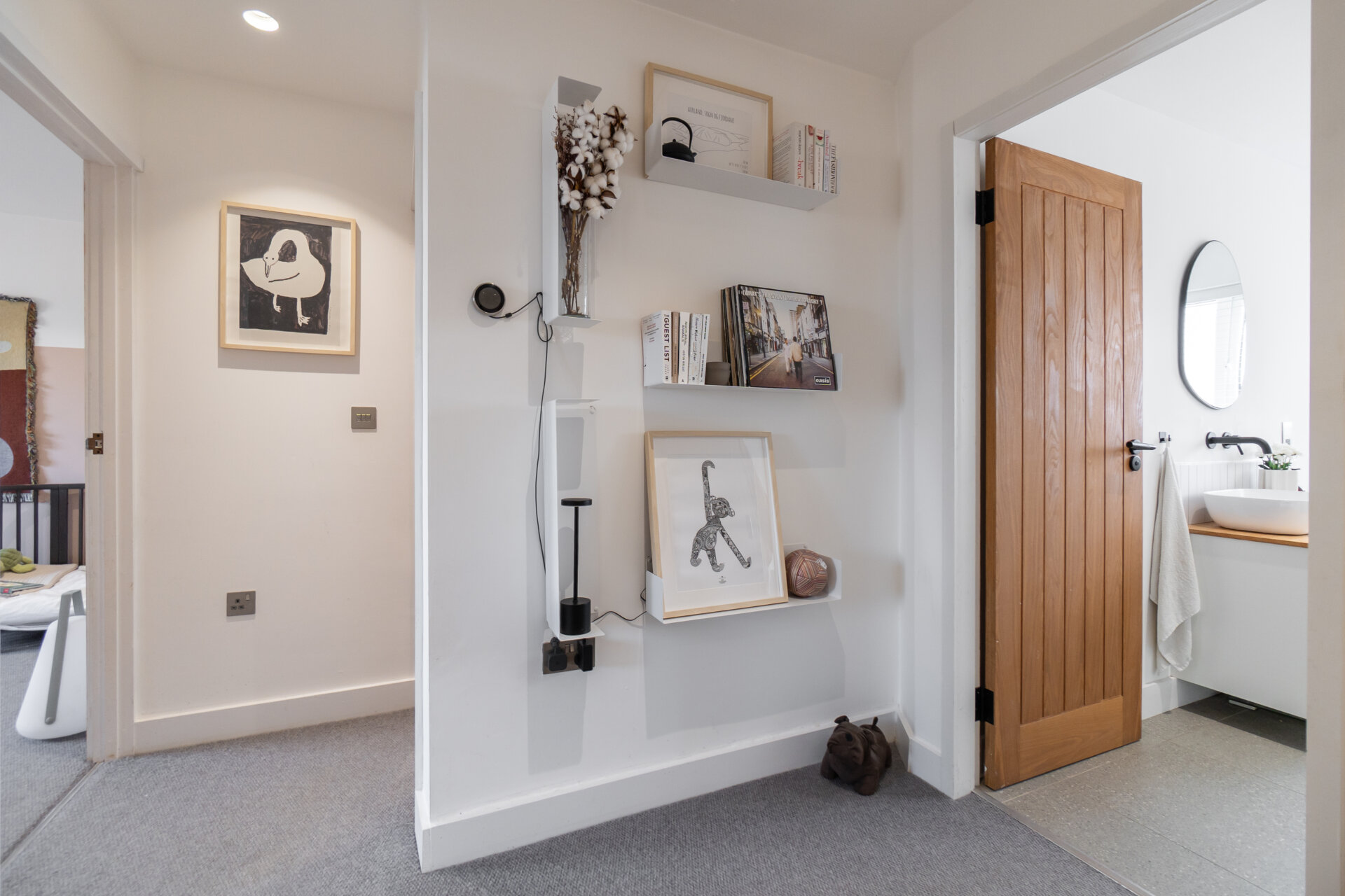 The first floor is arranged around a calm and quietly proportioned landing, with three bedrooms set out to maximise privacy and outlook. The principal suite incorporates a spacious dedicated dressing room which could very easily be adapted into an en-suite. Two further double bedrooms complete the level, each simply detailed and carefully scaled, serviced by a well-appointed bathroom, where a freestanding bath and walk-in shower are positioned to take advantage of natural light.