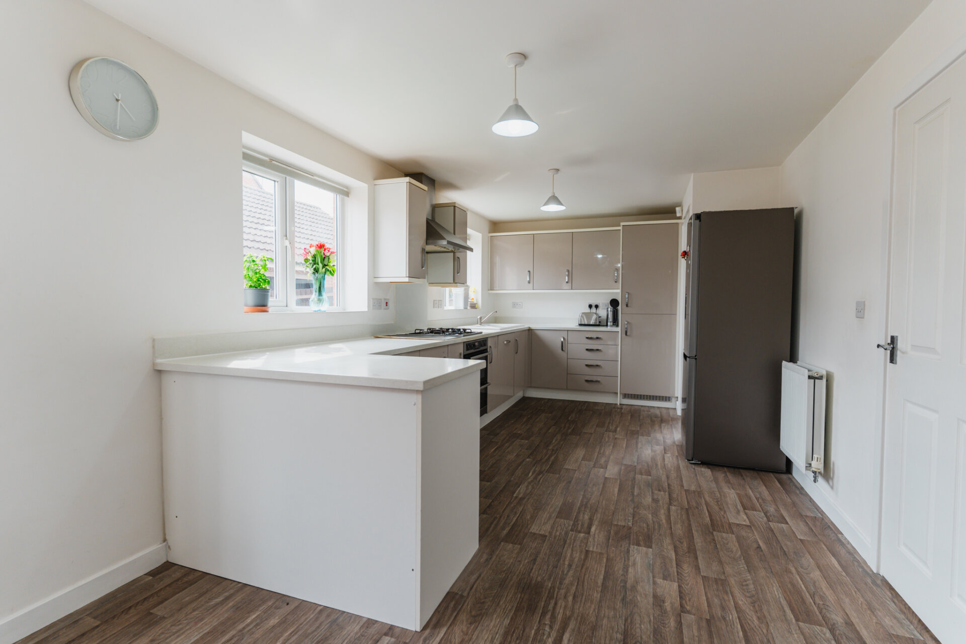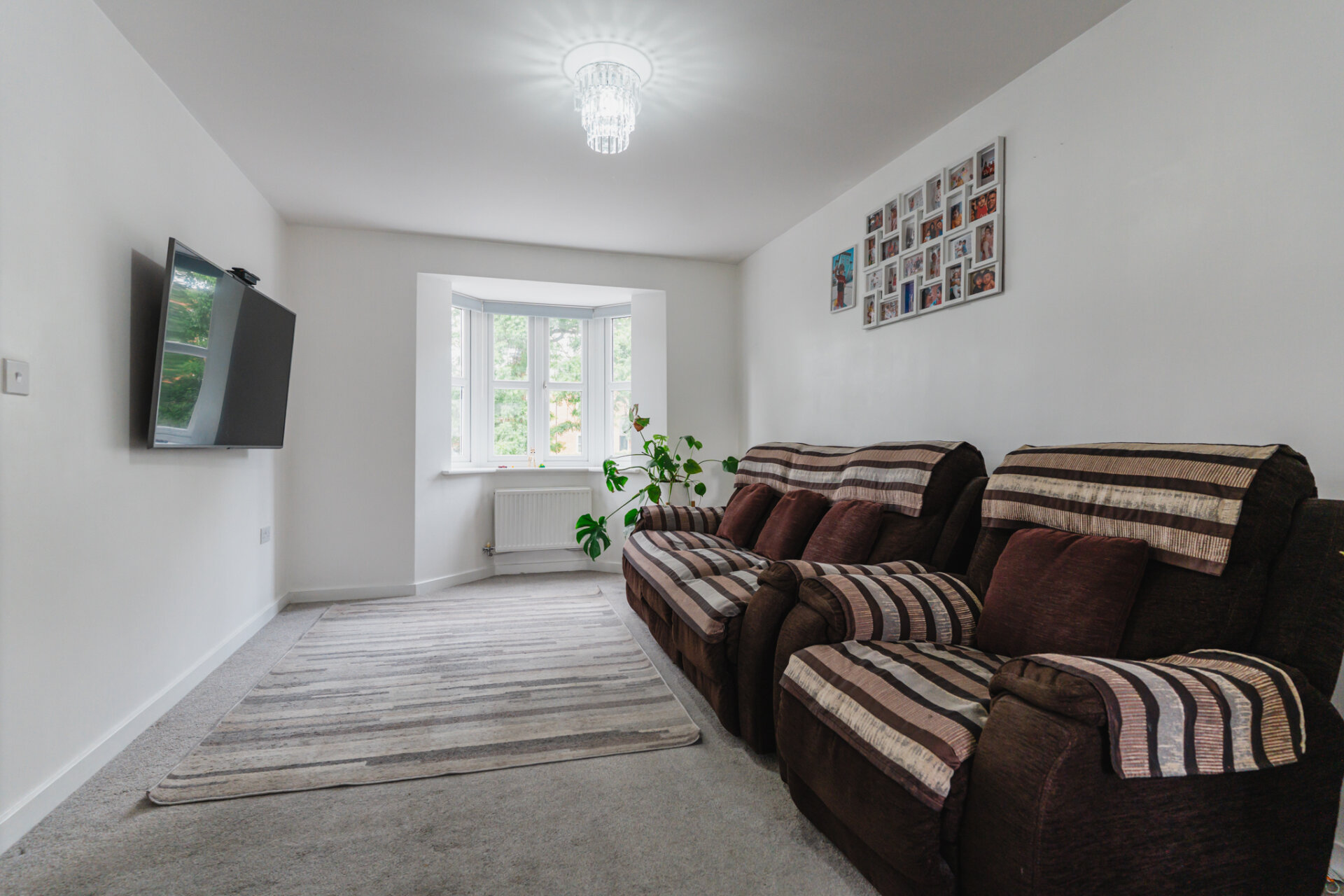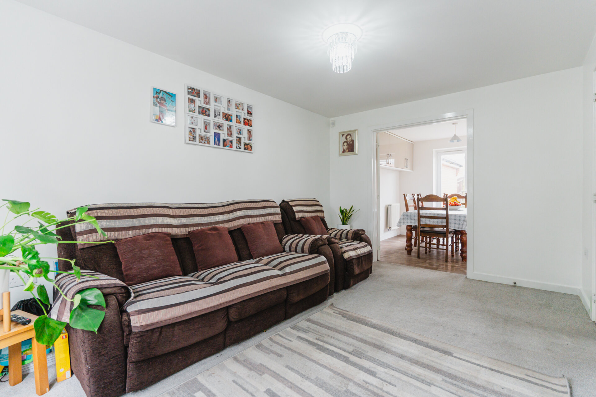 Step inside and you’ll find a light-filled entrance hallway with understairs storage and a handy downstairs WC. At the front of the home are two versatile reception rooms: a bay-fronted lounge for relaxing, and a second bay-fronted room which would make the perfect space for working from home or as a playroom.