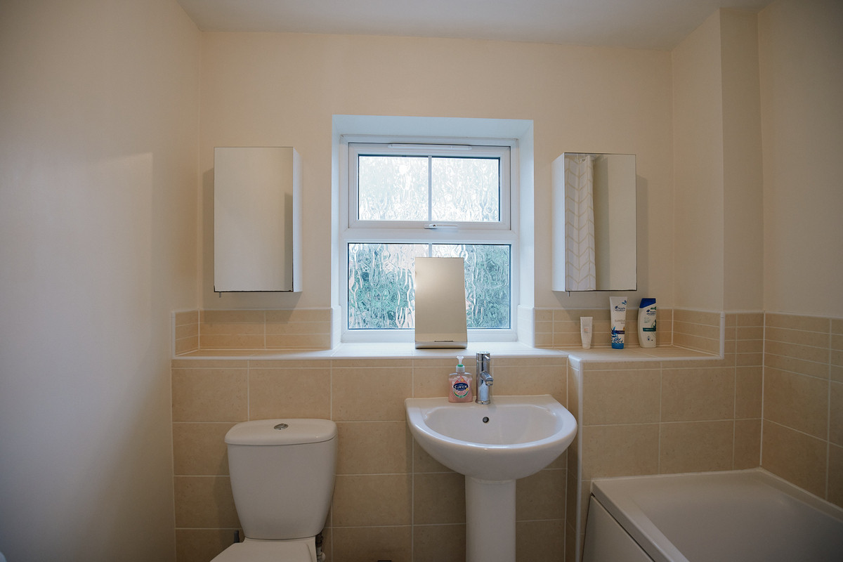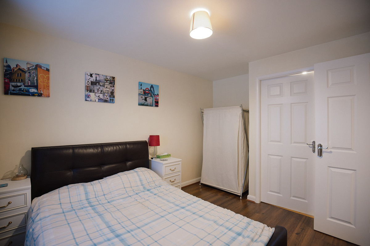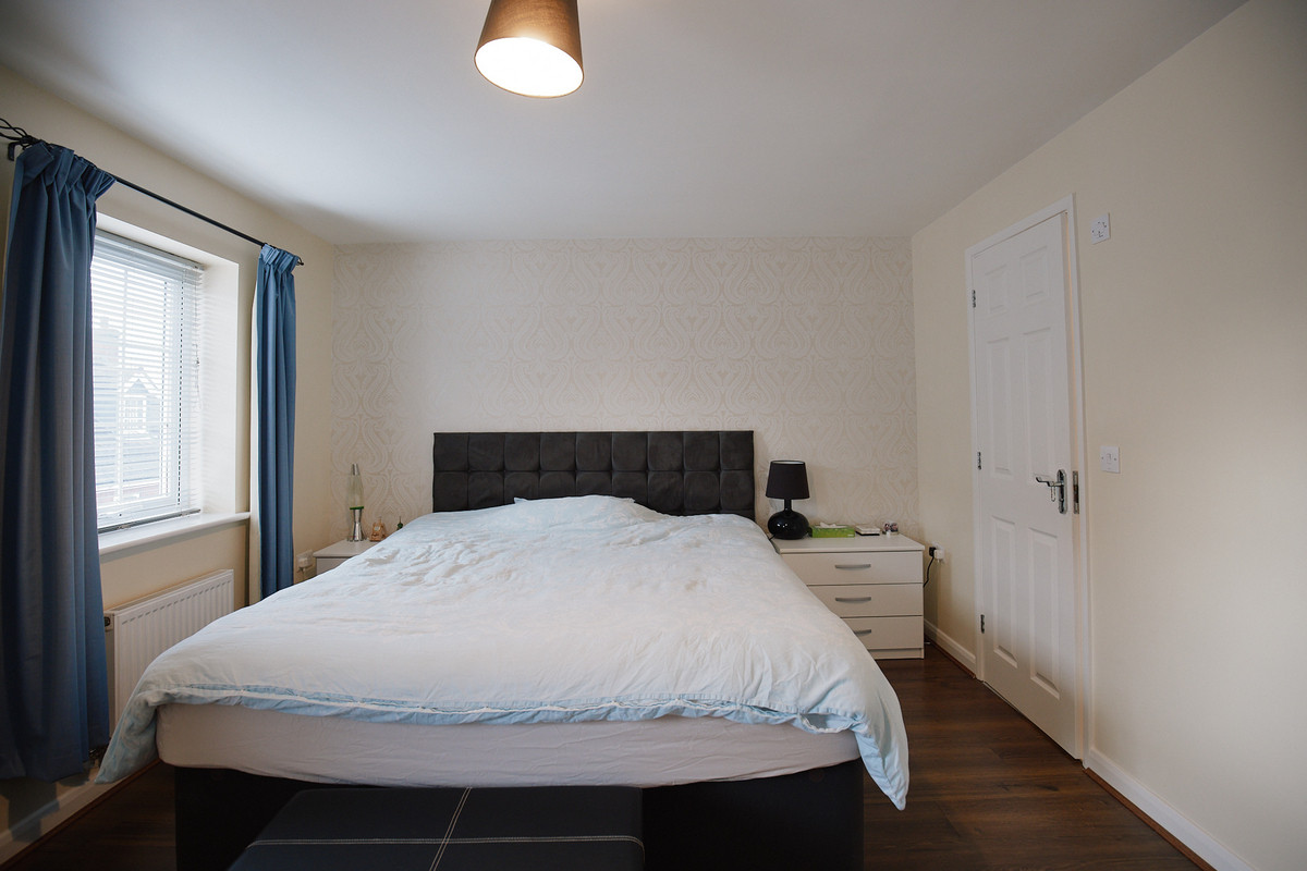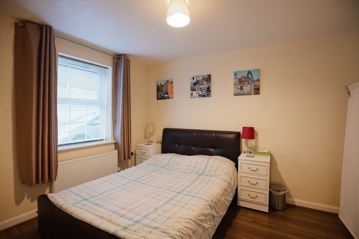 Ascending the initial flight of stairs brings you to a well-presented and stylishly appointed fitted kitchen, complete with a six-ring gas cylinder hob and a concealed extractor hood. The kitchen offers ample surface preparation area and provides views of the rear garden through double-glazed windows on the side aspect. A generously sized primary reception room, featuring modern laminate flooring, a Juliet balcony overlooking the front of the development, and ample space for freestanding furniture, completes this level. A second set of stairs leads to two additional bedrooms and another three-piece family bathroom. The master bedroom, positioned at the front of the second-floor accommodation, includes fitted wardrobes and an en-suite three-piece family bathroom.