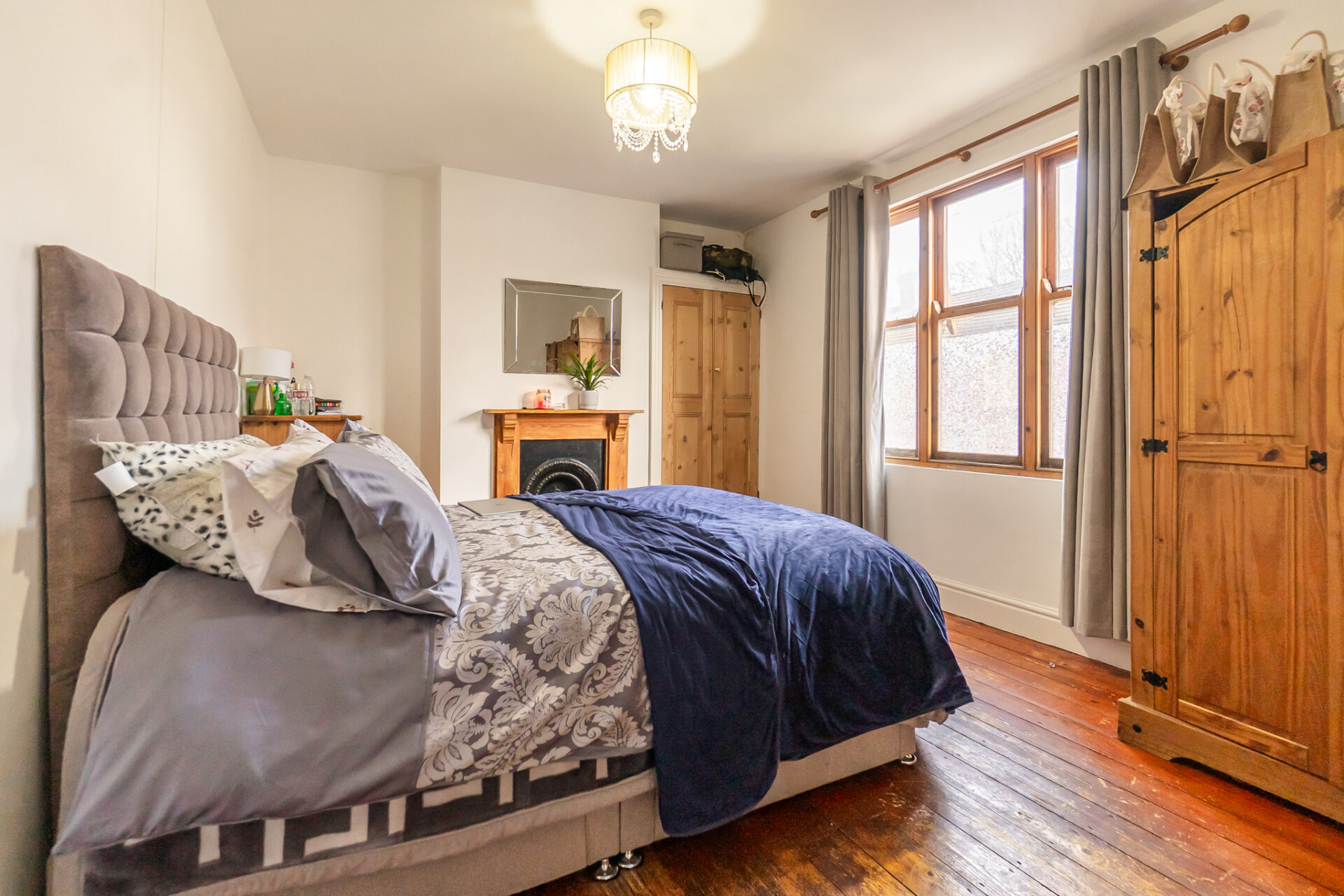 The first floor comprises three generous double bedrooms. The principal bedroom is located at the front of the property and boasts large windows and a feature fireplace. The second bedroom enjoys views over the rear garden and also benefits from a feature fireplace, while the third double bedroom is positioned to the rear, offering a peaceful outlook. The bathroom is notably modern, well maintained, and thoughtfully laid out.