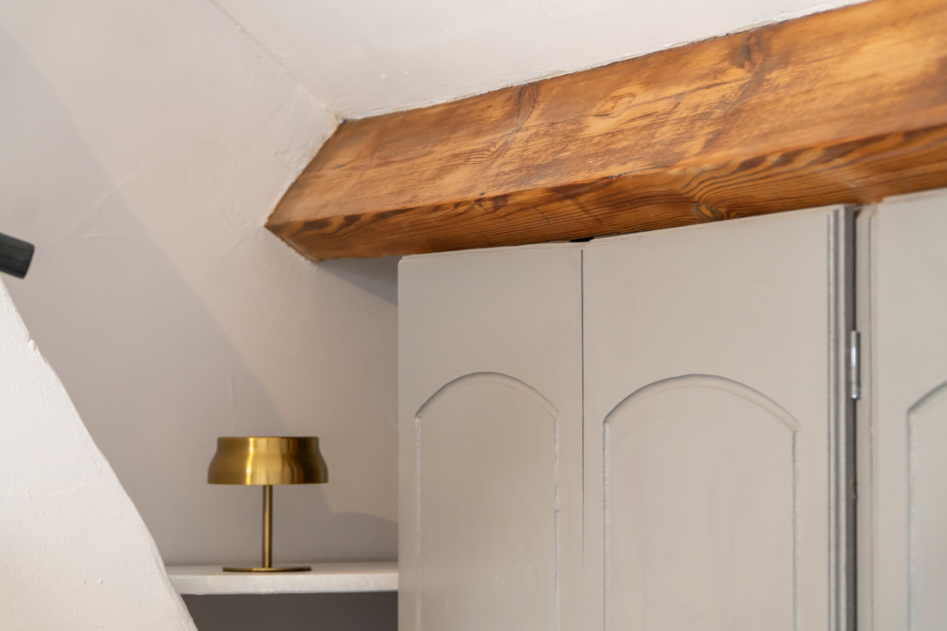 There are stairs off to the attic space that is fully functional with velux window, built in cupboards and storage into the eaves.