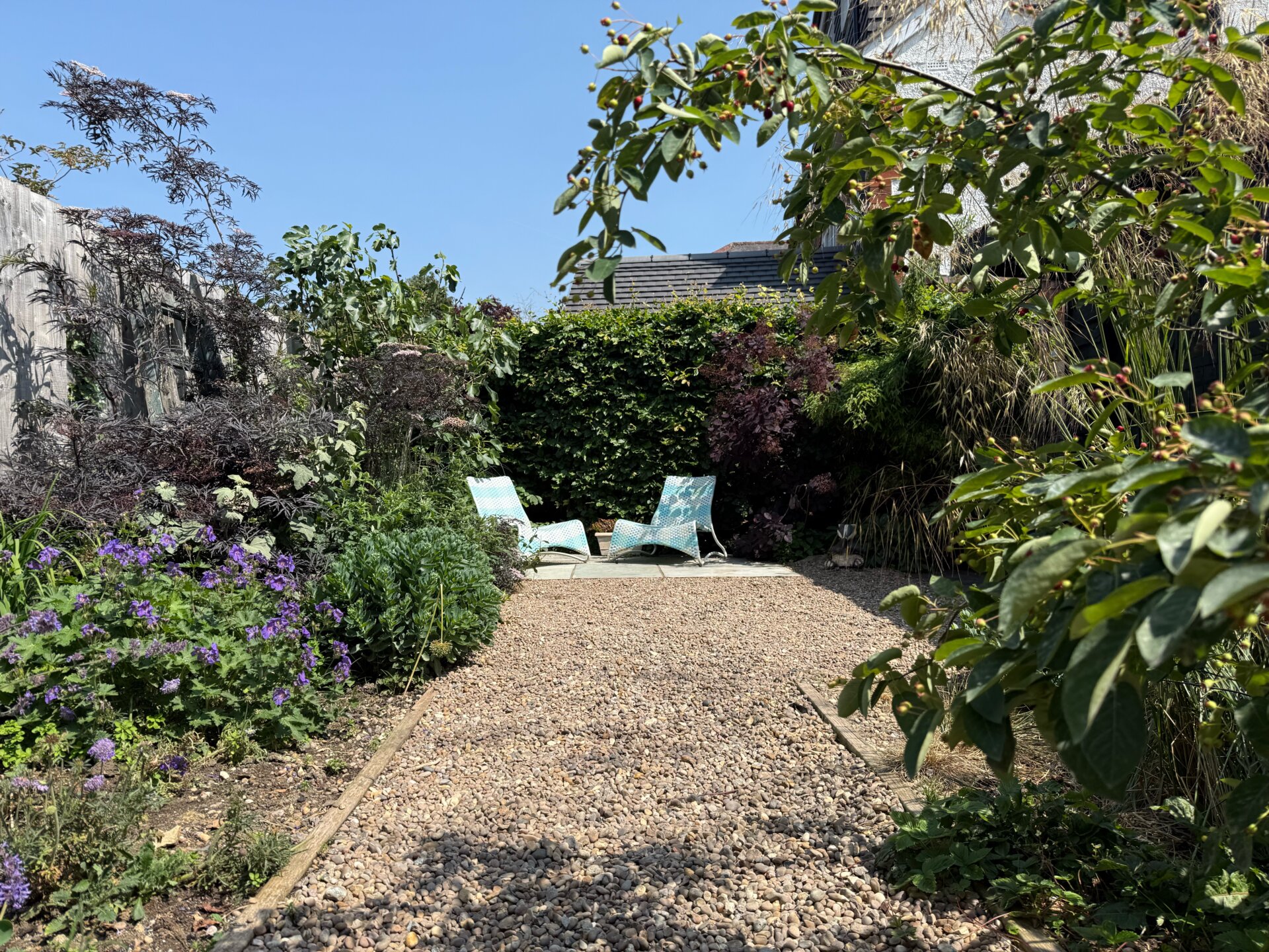 Outside, the private and well-established east-facing rear garden has been thoughtfully landscaped into distinct zones, with three separate patio areas—two paved and one featuring decorative stone. Mature borders and shrubbery provide excellent privacy from neighbouring properties, and an additional brick outbuilding houses the washing machine, tumble dryer, and a separate WC. Readily available on-road parking can be found directly outside the property and neighbouring streets.