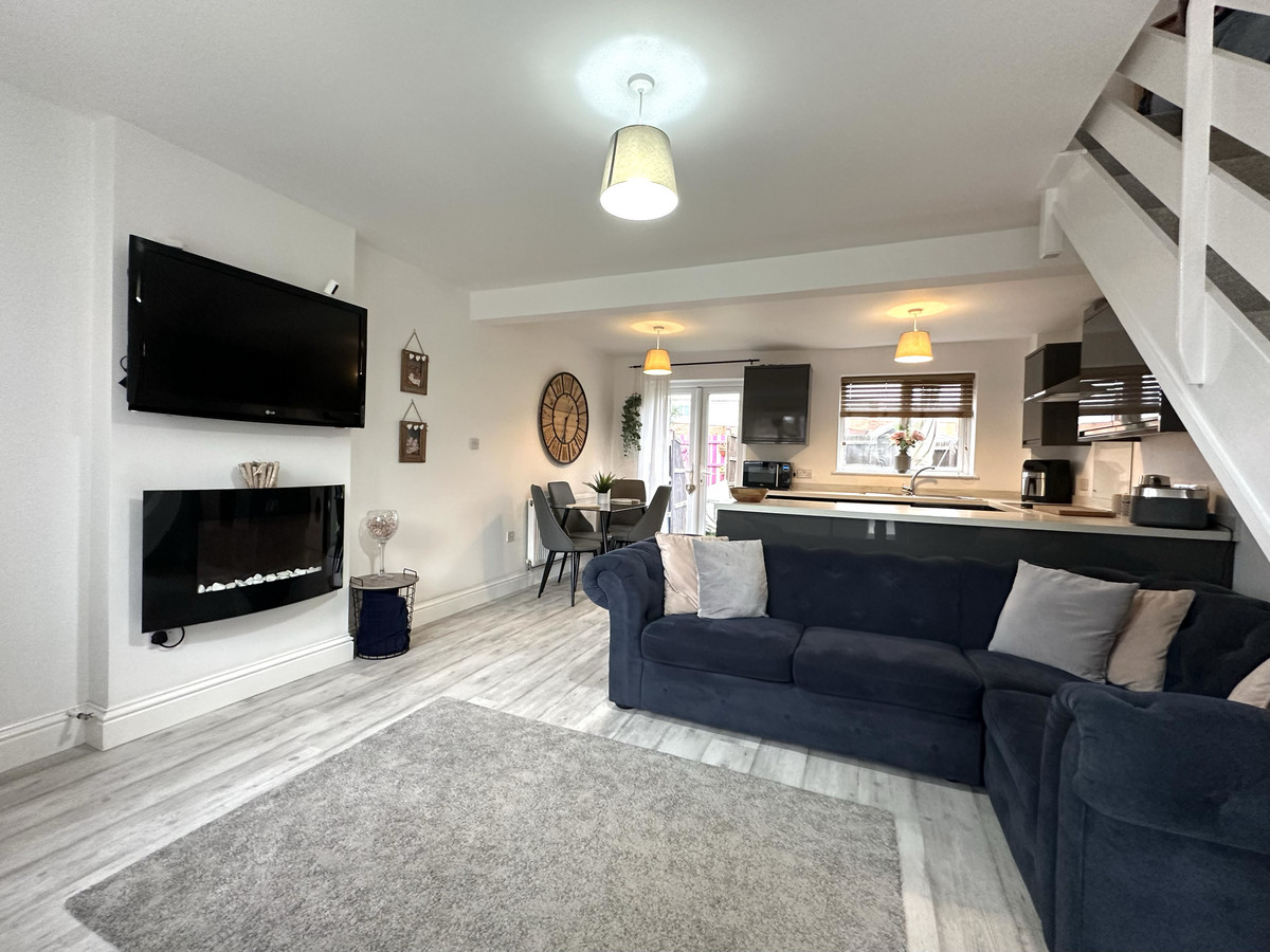 From the kitchen area there are French doors that seamlessly connect to the rear garden, which provides a patio area and lawn. Convenient off-road parking is available to the front of the property.