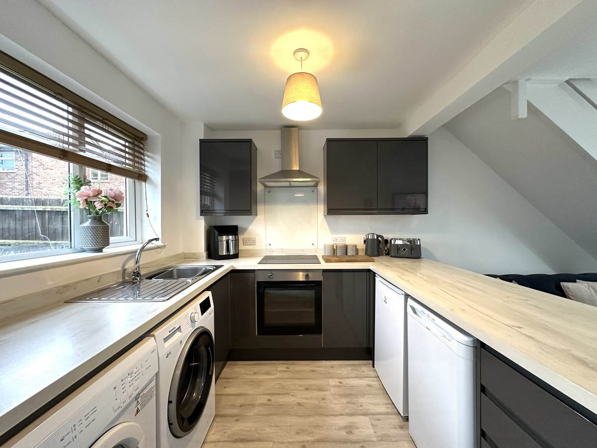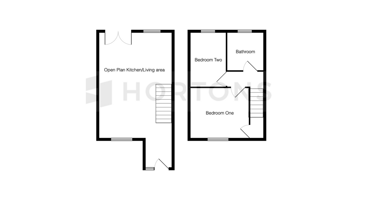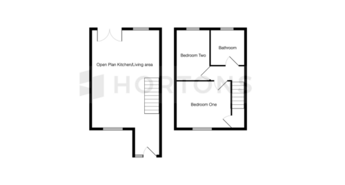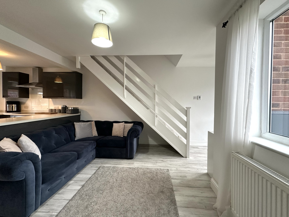 This ideal starter home or investment provides a thoughtfully designed layout featuring an inviting open-plan living, kitchen, and dining area on the ground floor, complemented by two bedrooms and a bathroom on the first floor.