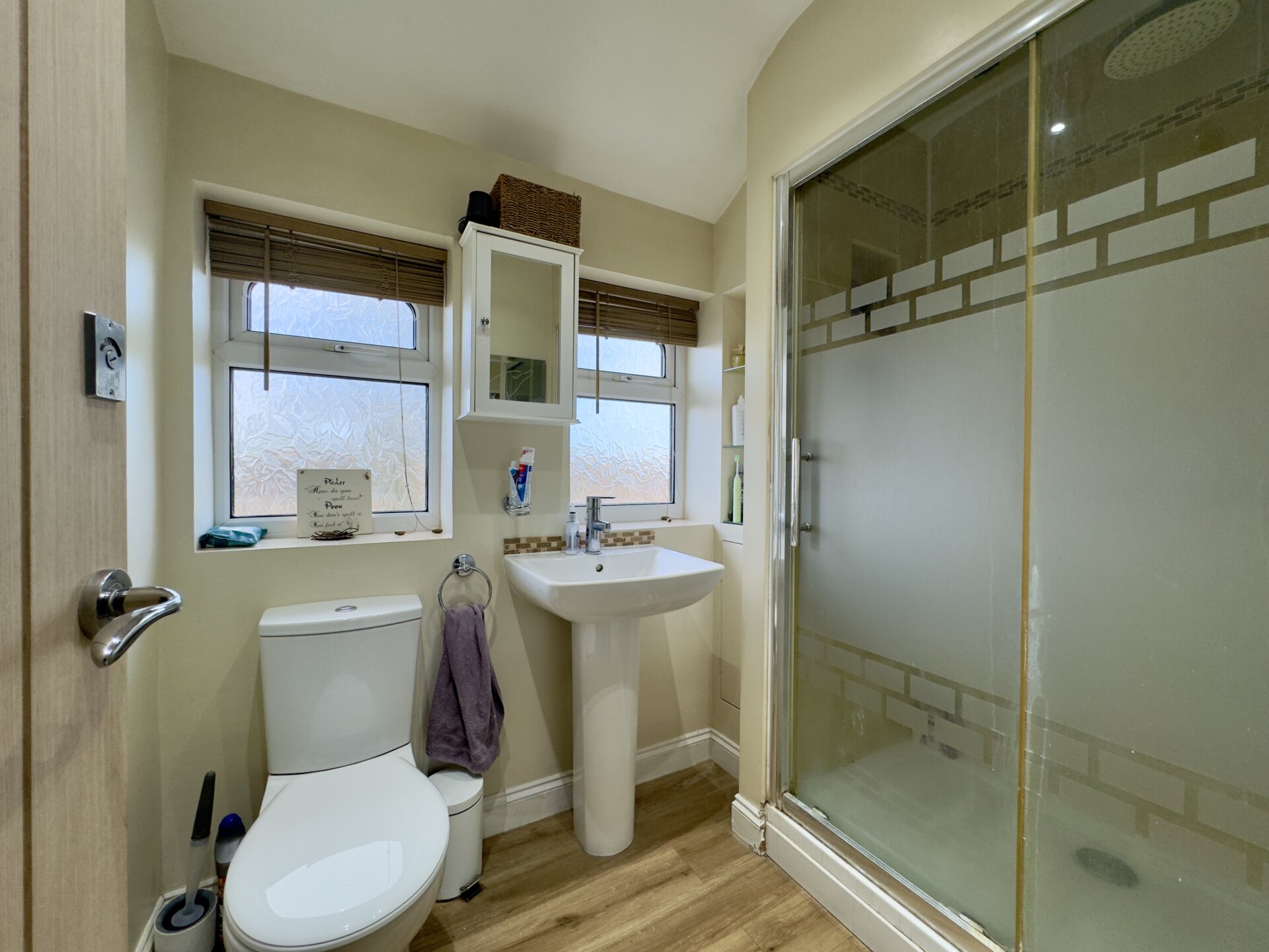 On the first floor are three well proportioned bedrooms, each providing plenty of space for furnishings and storage. The shower room is fitted with a three piece suite including a double shower cubicle. From the landing the loft can be accessed via a fixed ladder which offer an abundance of additional storage.