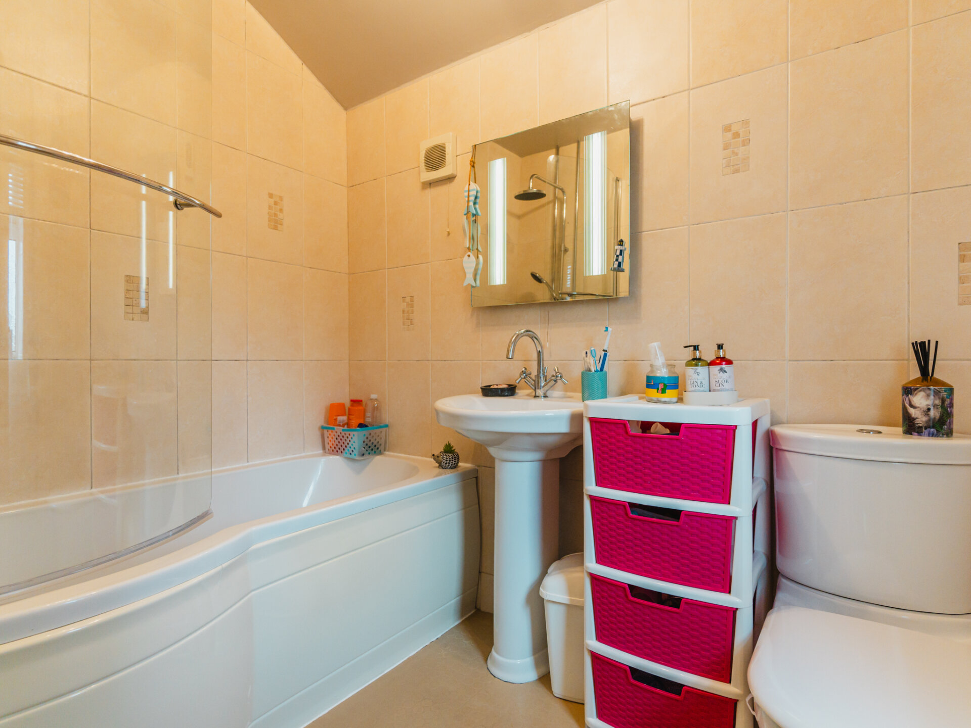 All bedrooms are served by the family bathroom, which has been fitted with a modern, three piece suite including a bath with a shower overhead, pedestal hand basin, and WC.
