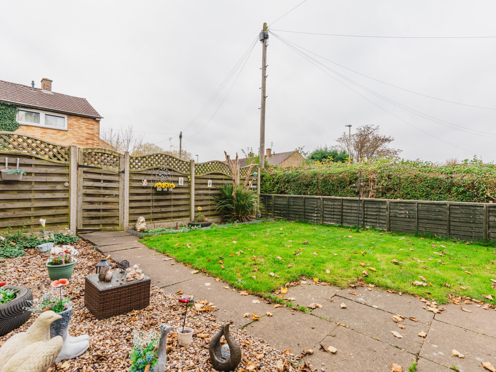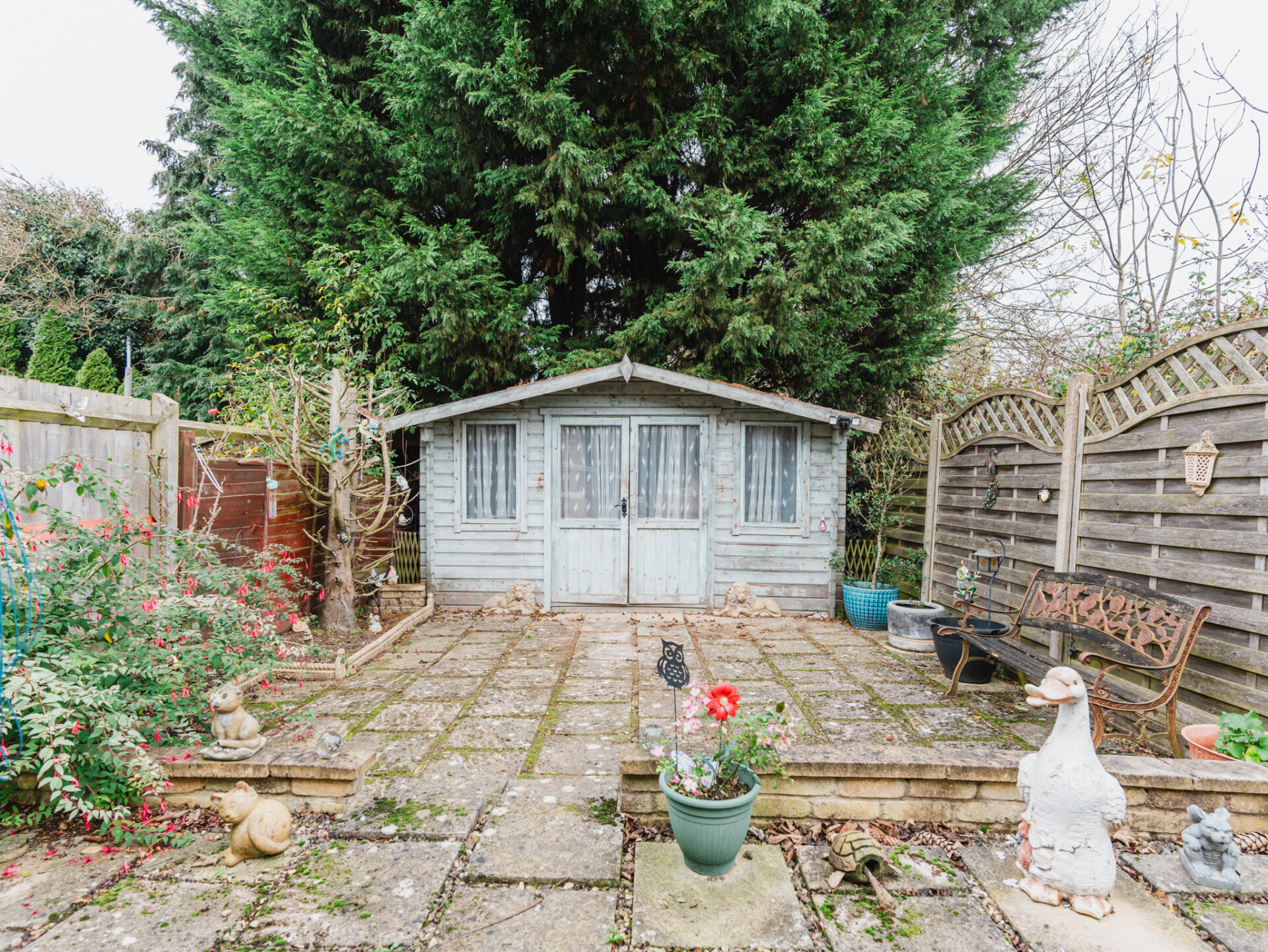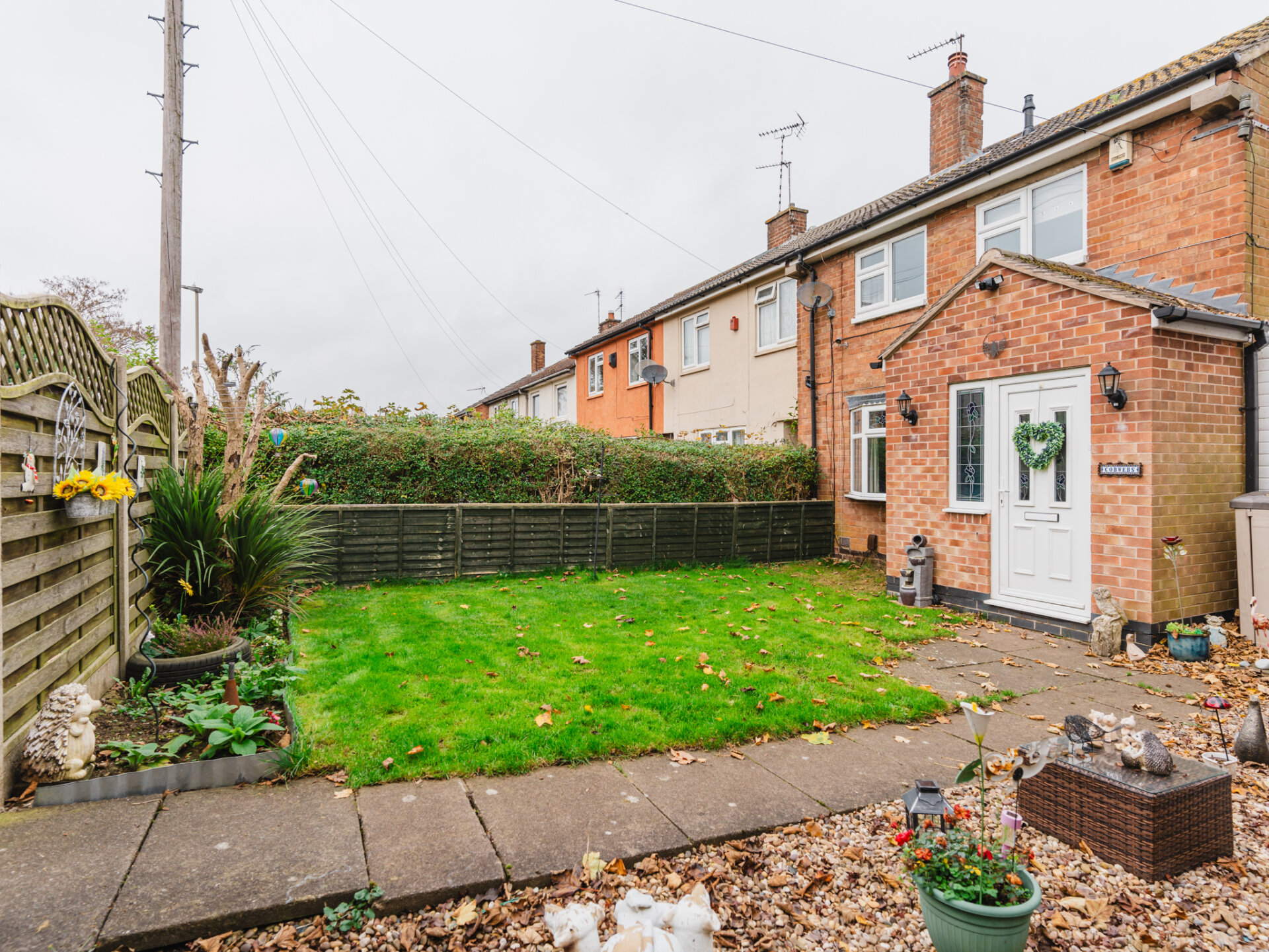 The property benefits from an enclosed front garden, mainly laid to lawn, with a gravelled border and a pathway leading to the porch. The rear garden is fully paved for low maintenance, featuring a small flower border and a large conifer tree for privacy. At the bottom of the garden, you’ll find a timber outbuilding with power and light, offering endless possibilities as a home office, gym, or summerhouse.
