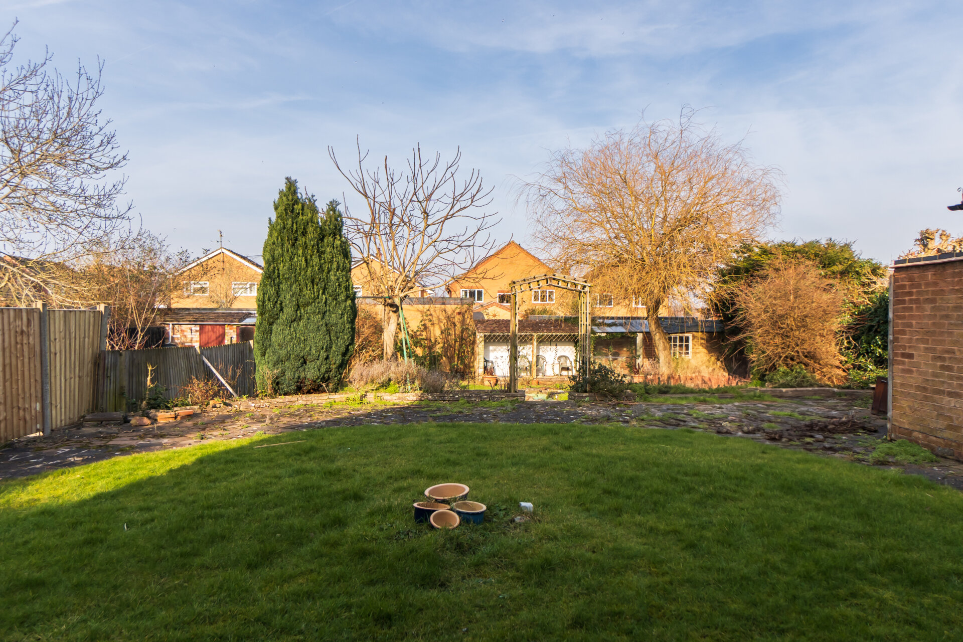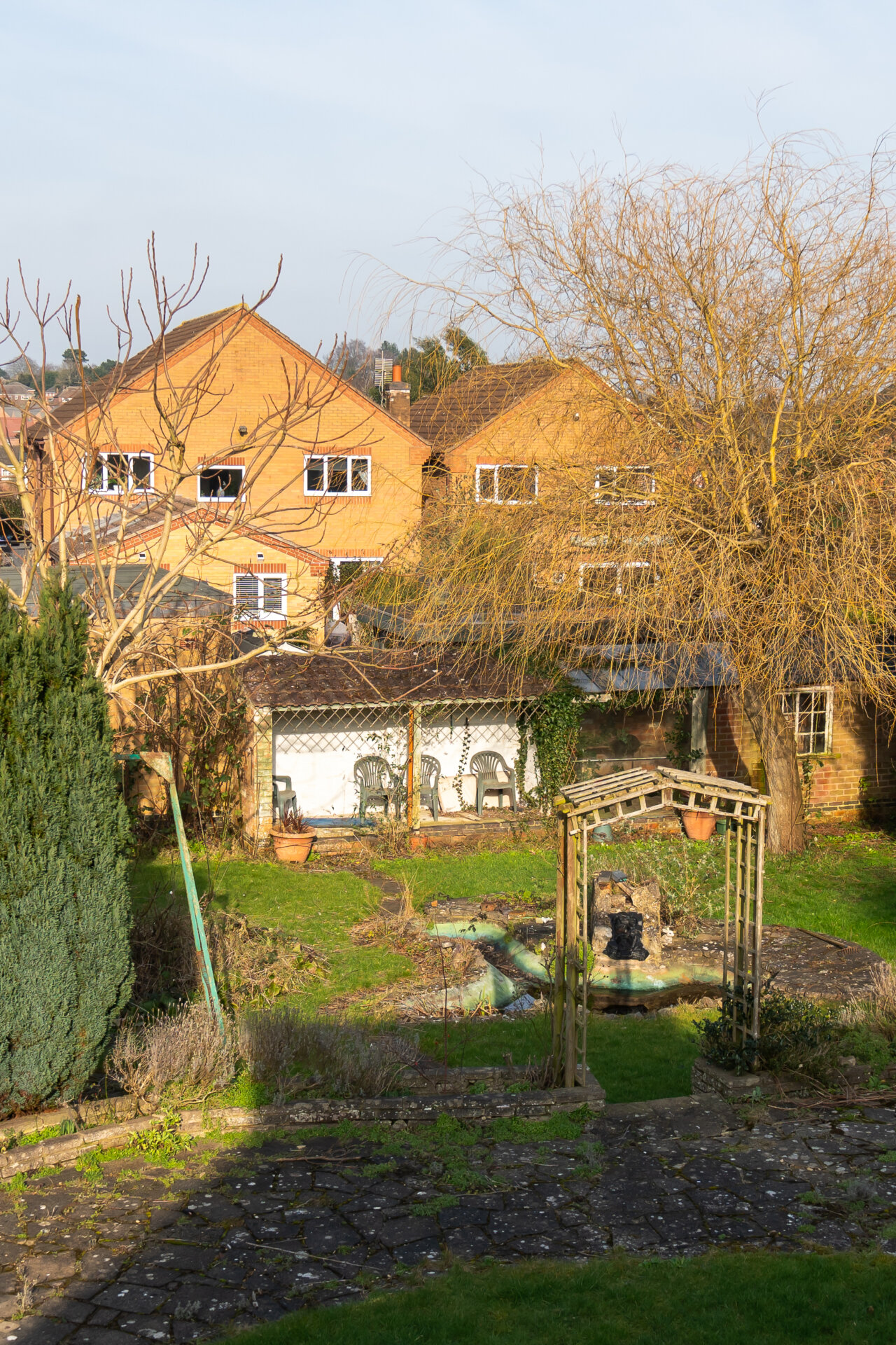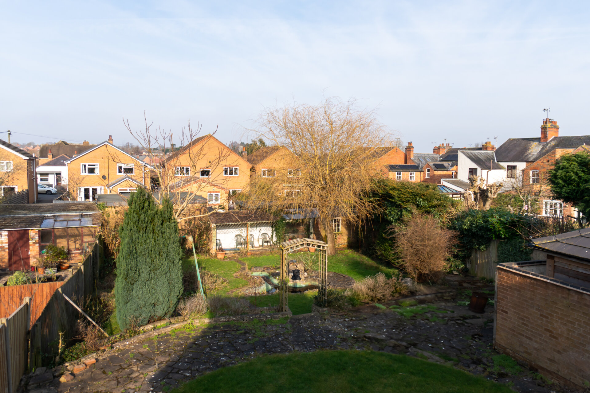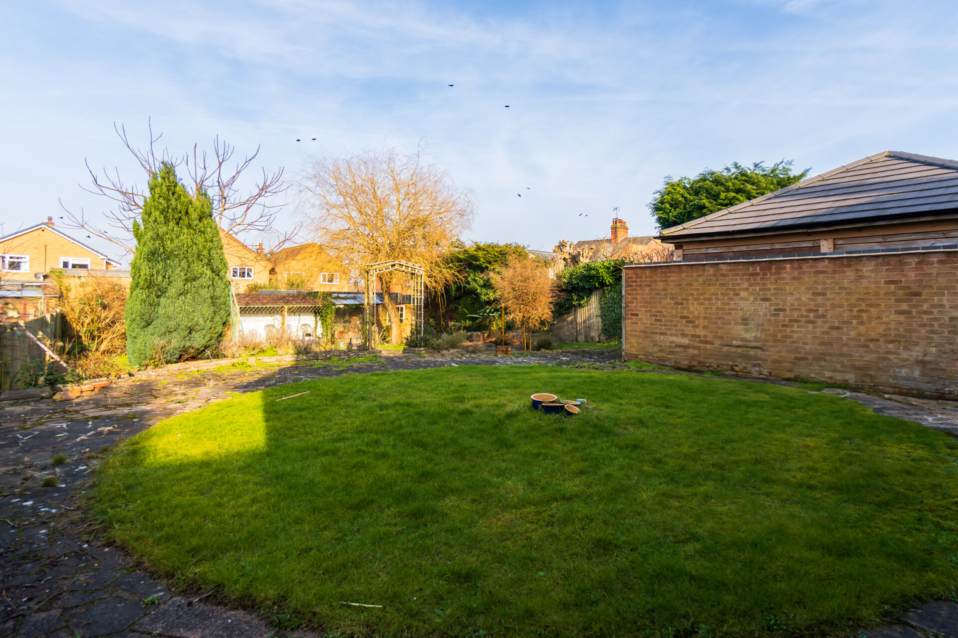 The property is situated on a large plot with a lawned front garden and driveway providing off road parking and access to the garage. There is a pedestrian side gate allowing access into the rear garden. The particularly generous rear garden offers a large circular lawn with crazy paving patio area encompassing the lawn, steps lead down to the lower garden having a further lawn, ornamental pond, mature trees, shrubs and planting. There is a handy brick-built store and delightful covered seating area allowing wonderful views of the entire garden back towards the house.