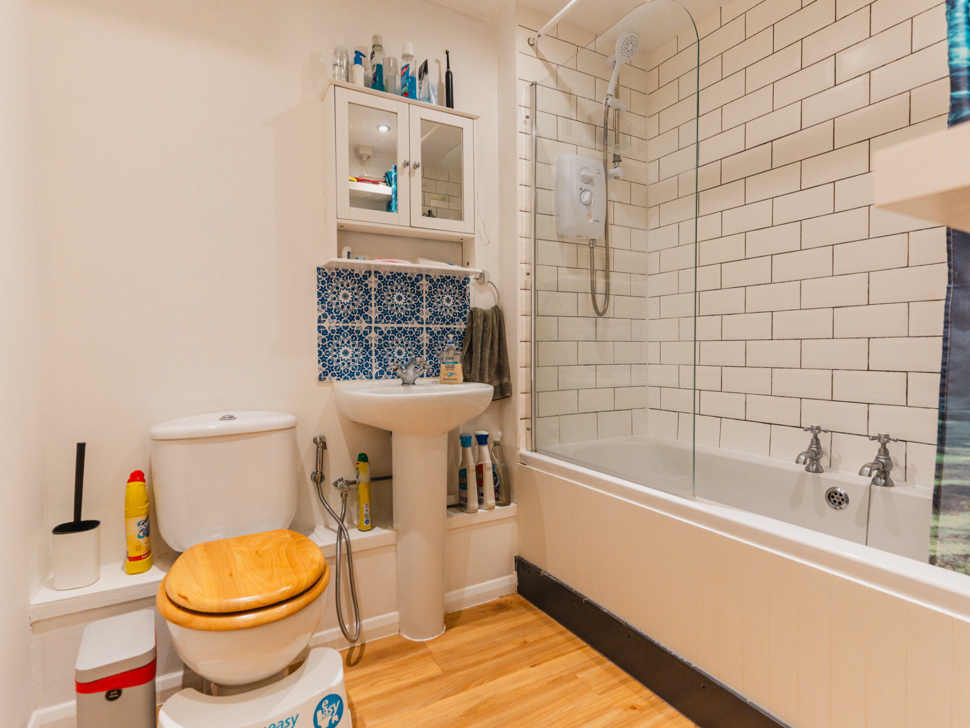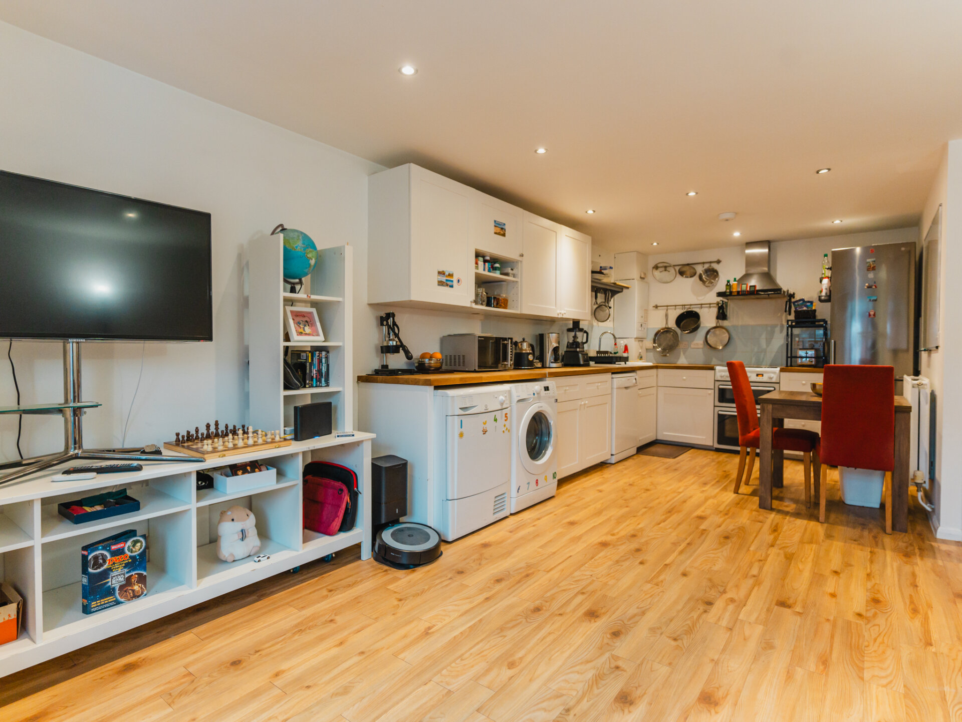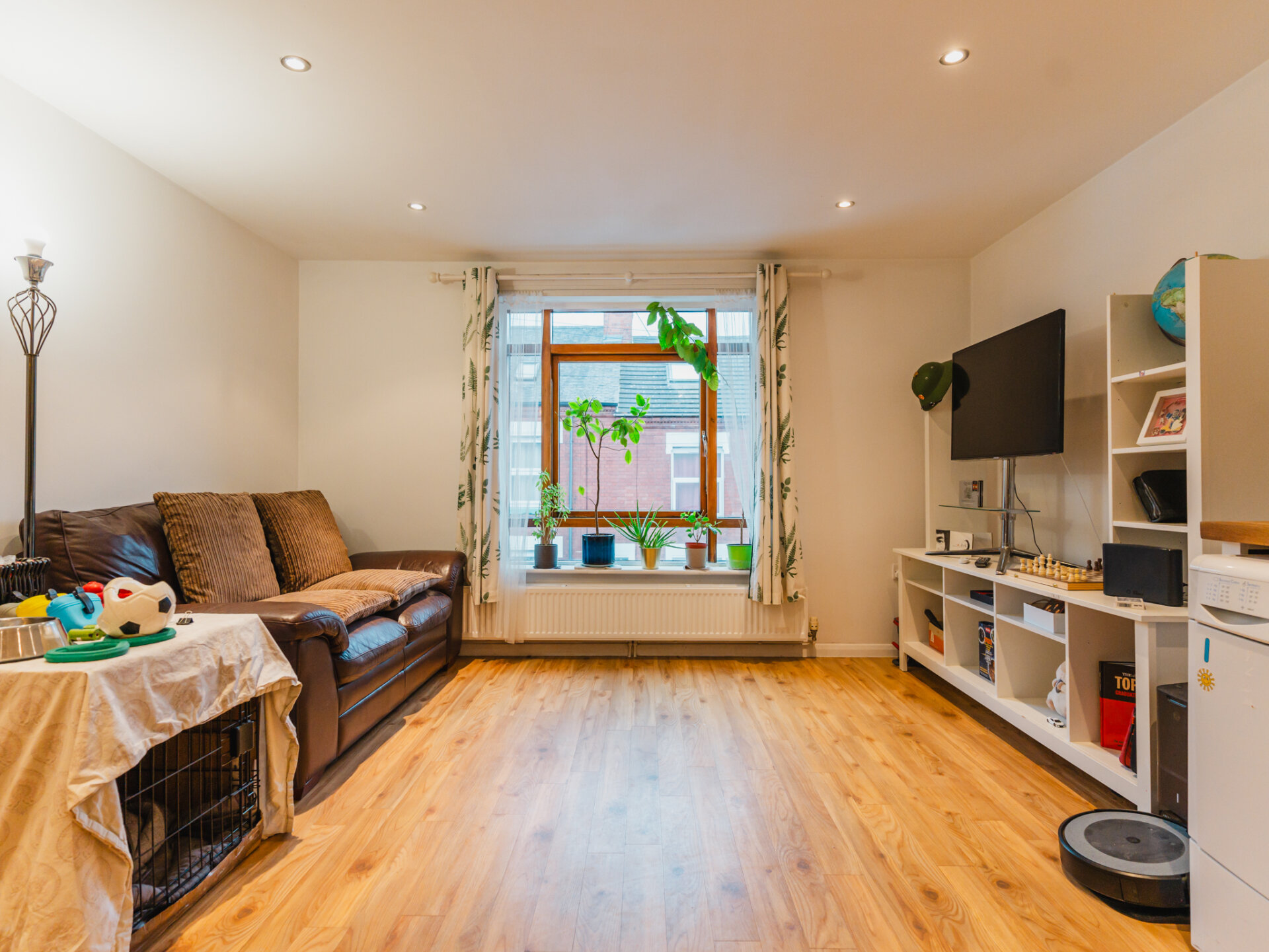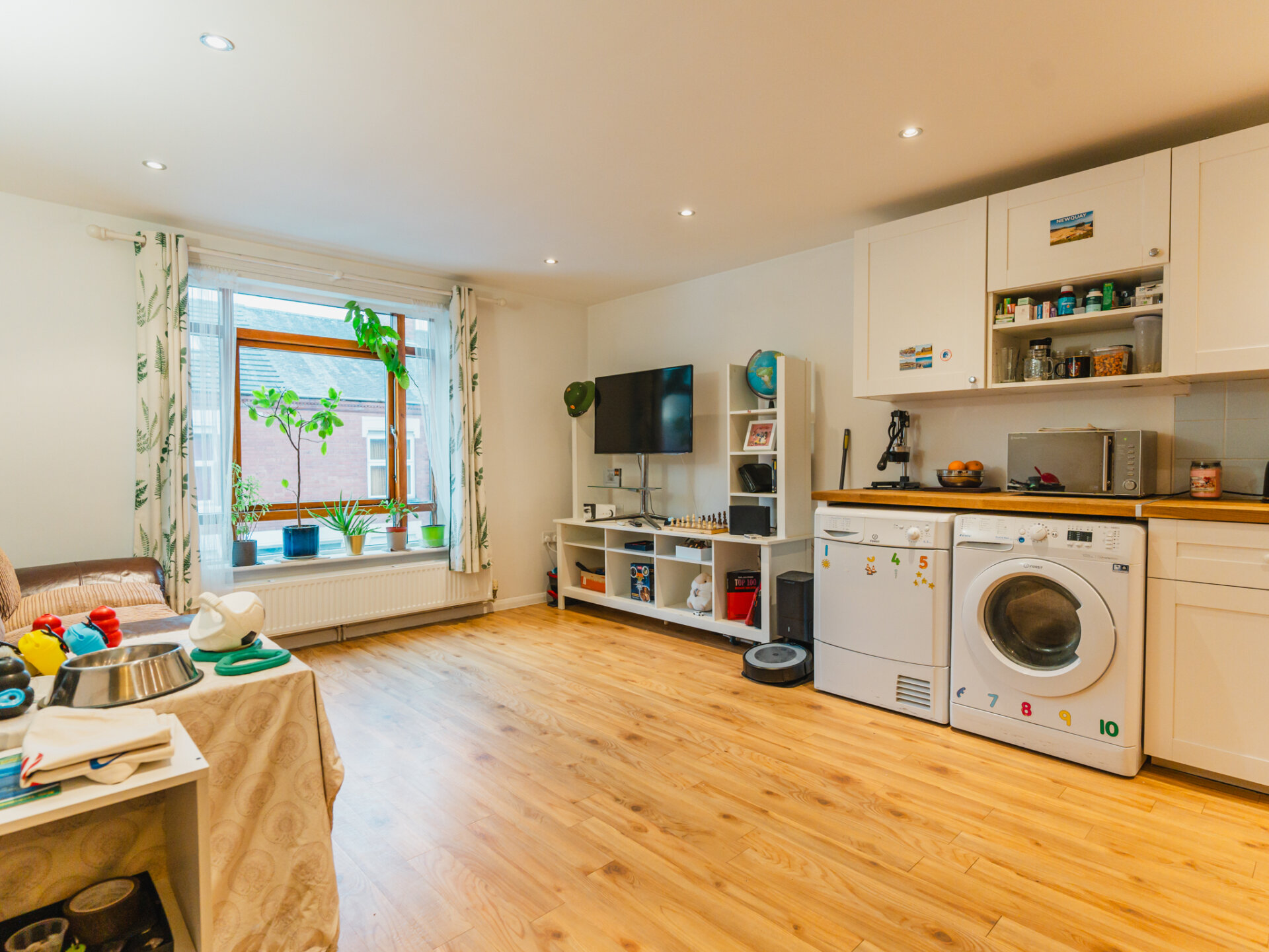 The true statement of this apartment is it’s expansive open-plan living, dining, and kitchen area, designed to be the ideal gathering space. Illuminated by sleek spotlights, the kitchen is fitted with an extensive range of stylish wall and base units, topped with generous wooden preparation surfaces. A modern ceramic sink, integrated oven with hob, and ample space for a freestanding fridge/freezer elevate the kitchen’s functionality, while additional plumbing provisions support a washer and dryer. Completing this well-equipped space is a recently installed, energy-efficient Worcester combi-boiler which is less than two years old. The living and dining area, framed by double-glazed, wooden windows with views of Fleetwood Road, is flooded with natural light, creating a warm and inviting atmosphere. The property is complete by a recently refurbished three-piece family bathroom, finished with contemporary fixtures. The fridge-freezer, cooker, dishwasher, washing machine and tumble dryer are all included in the sale of the property.