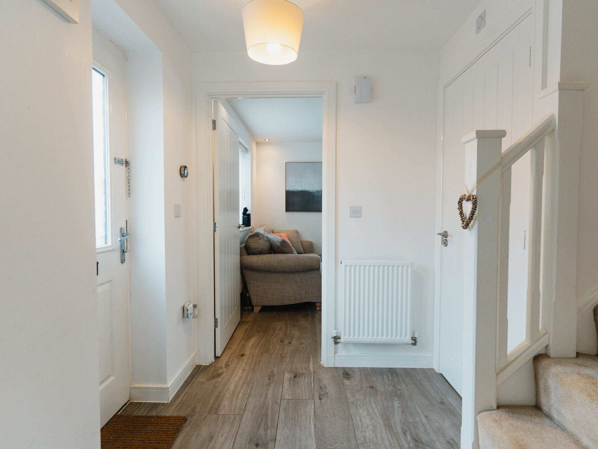 As you step through the doorway, the warmth of home envelops you in the inviting embrace of the entrance hall. Centrally positioned, it serves as a hub, seamlessly connecting the ground-floor rooms and the first-floor landing, promising a warm welcome to all who enter.