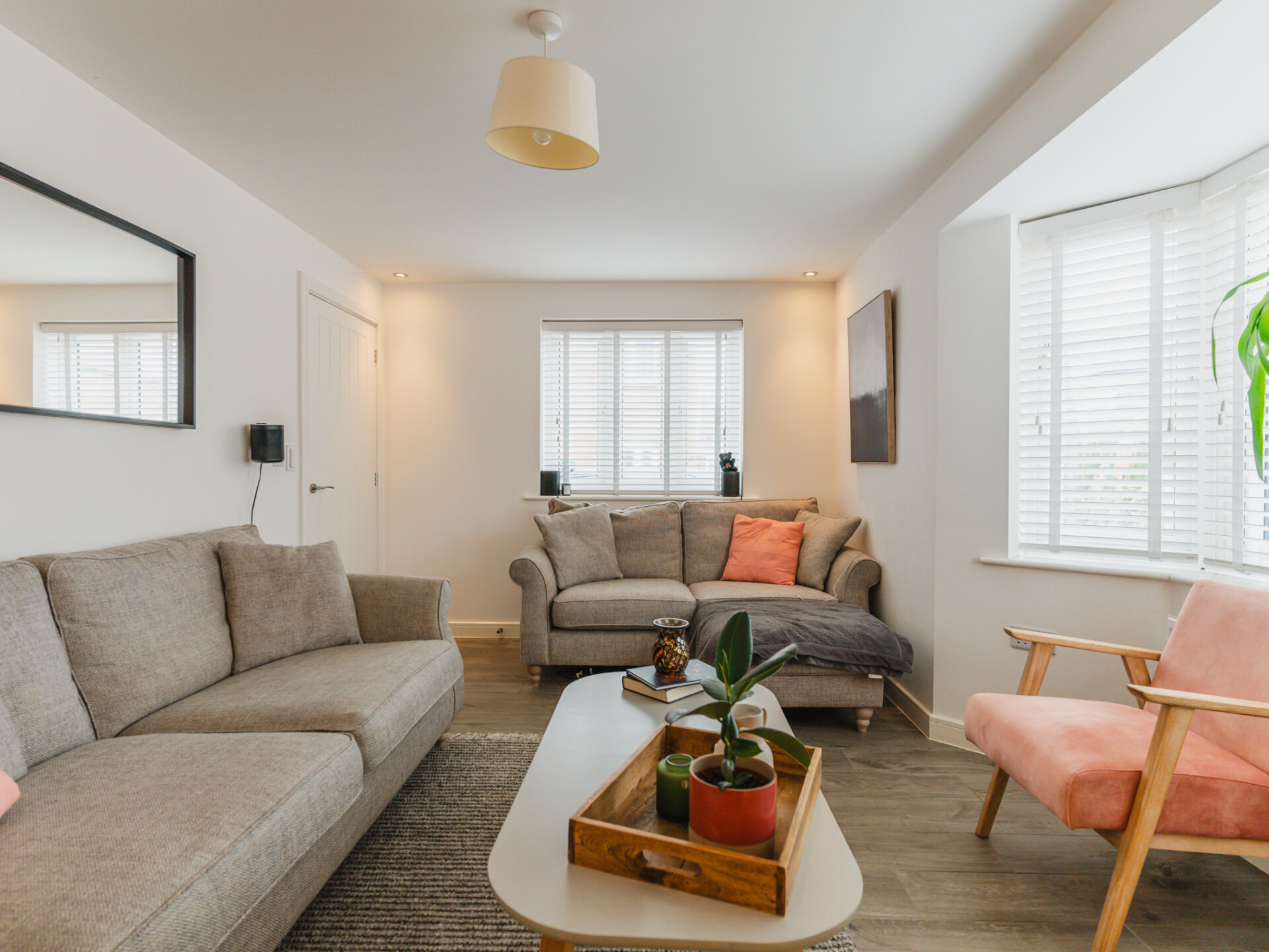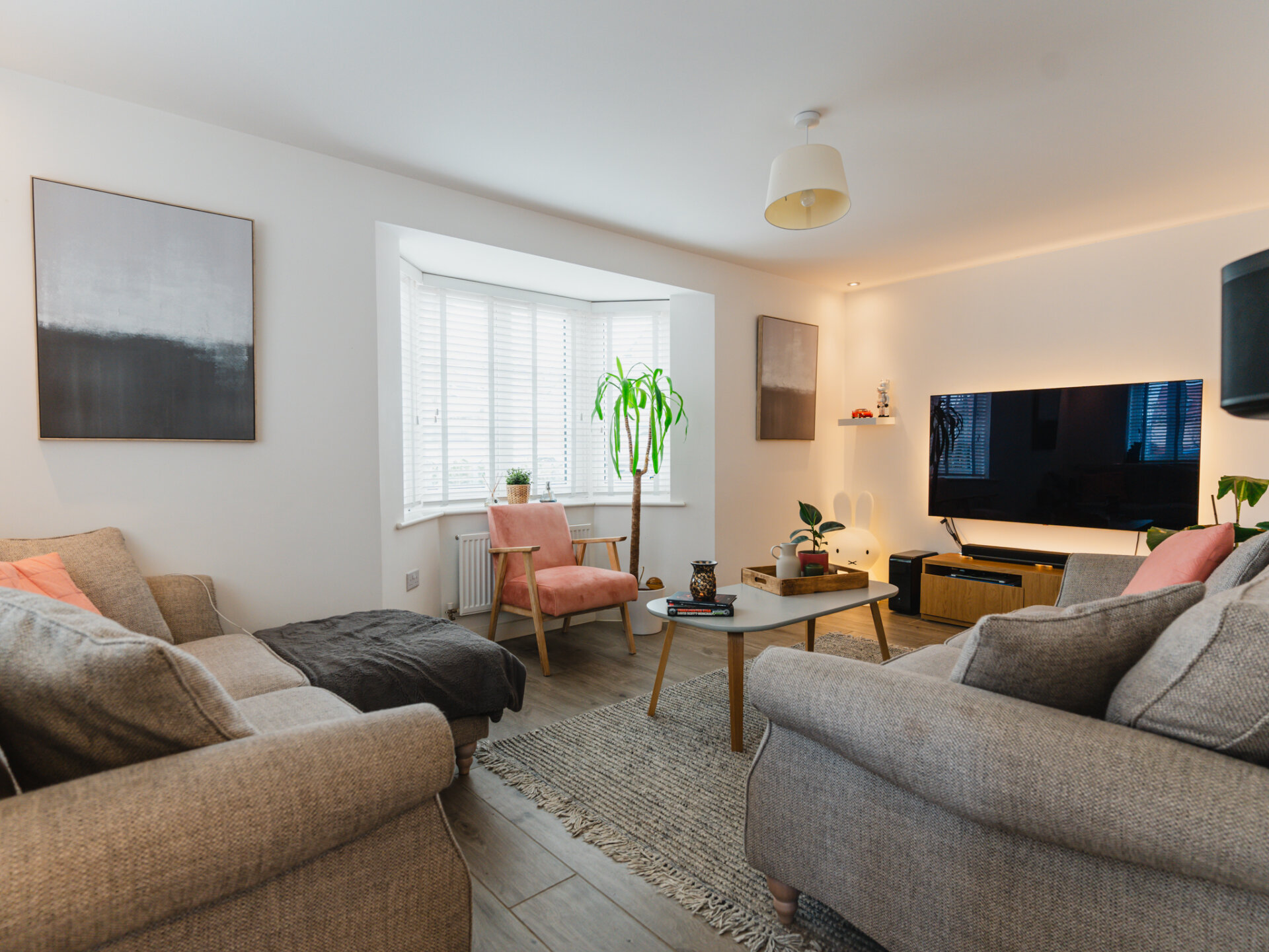 An inviting Living Room is situated just across the entrance hall. Here relaxation takes centre stage. With ample space for modern furnishings and a large bay window that invites streams of natural light, this room provides a sanctuary to unwind and recharge after a long day.