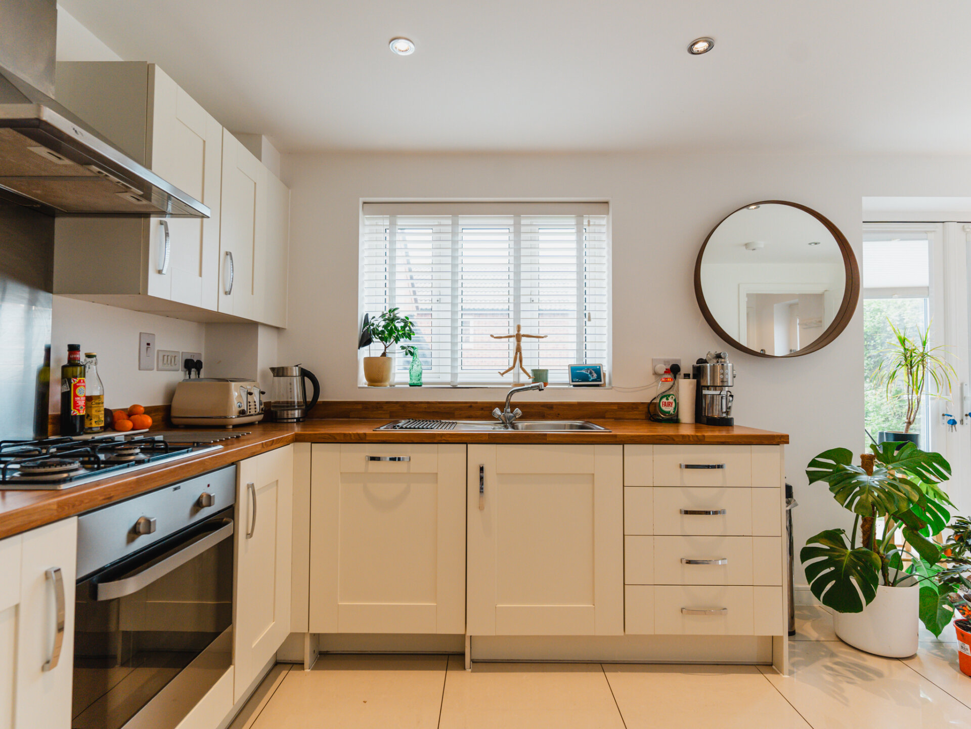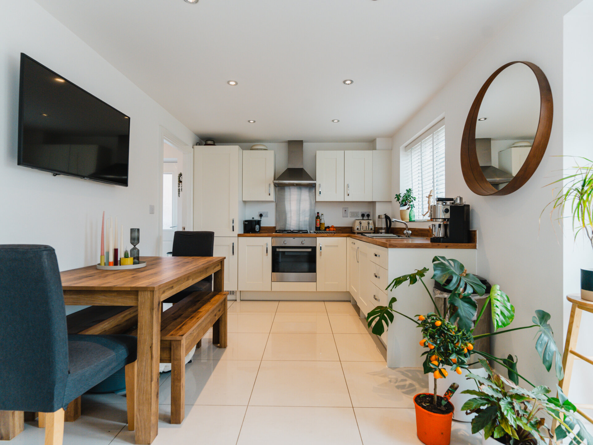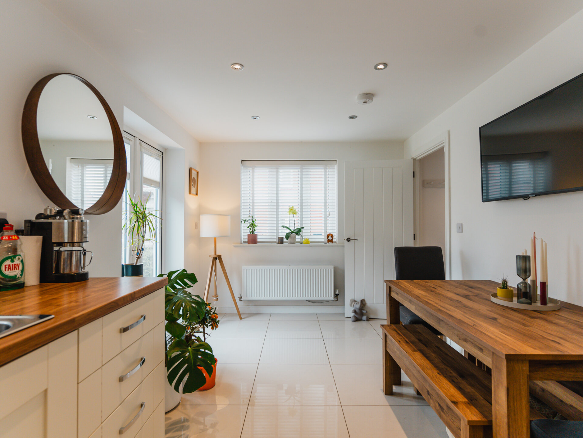 The heart of the home, the impressively spacious Kitchen/Diner, beckons with its open, airy ambiance. Stretching the depth of the property, this room is bathed in natural light, courtesy of French Doors that offer picturesque views of the garden. Culinary creations await in the well-appointed kitchen, complete with contemporary units, oak-effect worktops and integrated appliances. it's the ideal space for both cooking and socialising with family and guests.