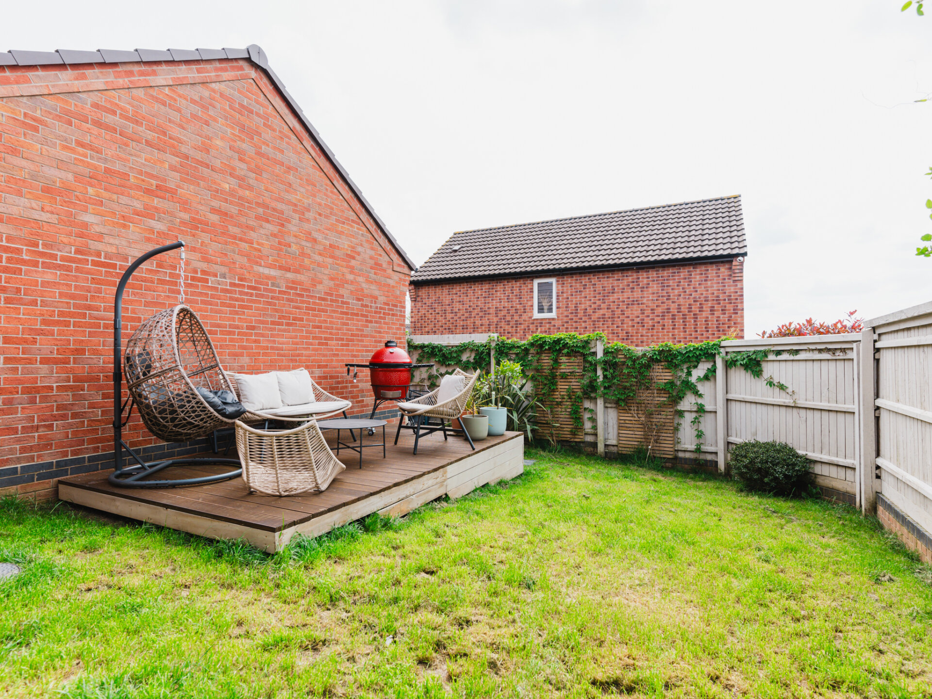 Stepping outside, the property reveals its hidden treasures, with a corner plot adorned with lush greenery and vibrant borders, providing a picturesque backdrop to your daily life. A tarmac driveway offers off-road parking for two cars, leading to the garage with power and light connected, while a sunny decked terrace beckons for alfresco dining and relaxation in the private, fully enclosed rear garden.