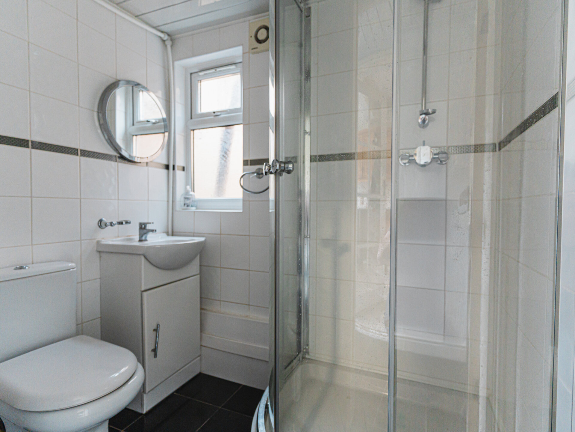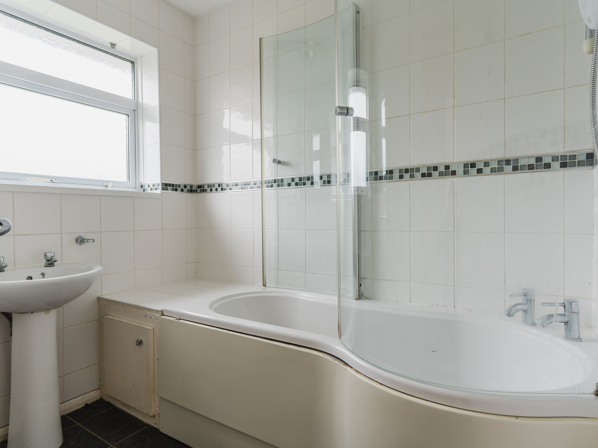 The house makes an immediate impression with its attractive façade and a paved driveway providing off-road parking for at least two vehicles. Entry is via a porch leading into a spacious hallway offering dual access to the principal living spaces. To the left, a front reception room is framed by a large bay window, original picture rails, and an open marble-inset fireplace—a striking focal point. A second reception room to the rear enjoys views of the west-facing garden through double-glazed patio doors, while a centrally positioned breakfast kitchen provides ample storage, a double electric oven with a four-ring gas hob, and generous workspace. A thoughtfully reconfigured former garage now serves as a games room or optional fourth bedroom, ideal for multi-generational living. A well-appointed and modern shower room completes the ground floor. Upstairs, a wide landing leads to three well-proportioned bedrooms—two spacious doubles and a large single—all presented in a neutral palette with wool carpets. A family bathroom and separate WC serve the upper floor. The principal bedroom, positioned at the front, benefits from a bay window that floods the space with natural light.