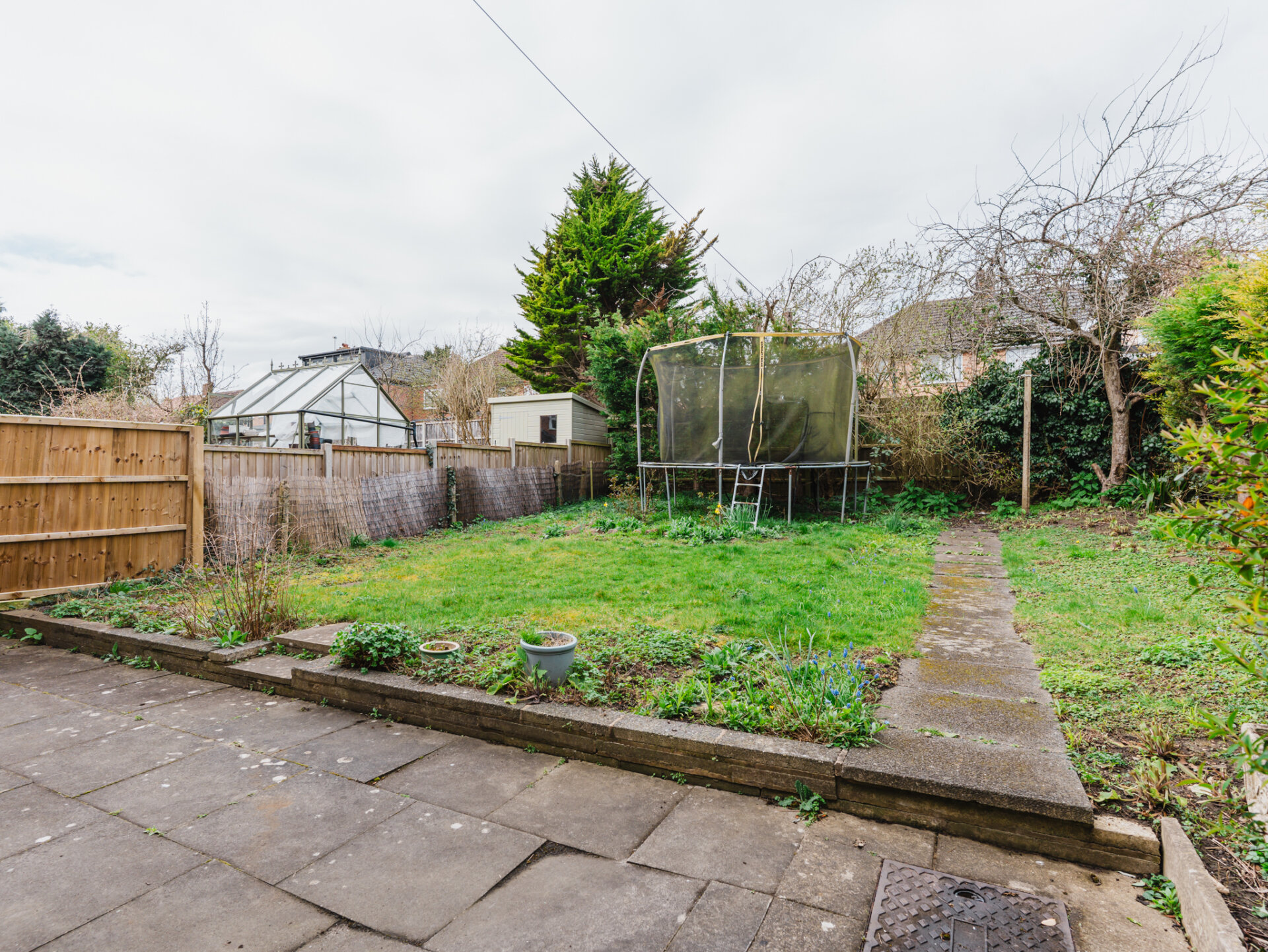 Outside, the west-facing rear garden is an inviting and private space, bordered by mature trees and shrubs. Mostly laid to lawn with a paved patio area, the space offers excellent potential for extension, subject to the necessary consents.